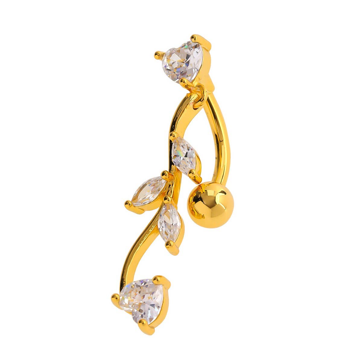 Leaf Heart Tassel Navel Ring Stainless Steel Bar_CWMM9385
