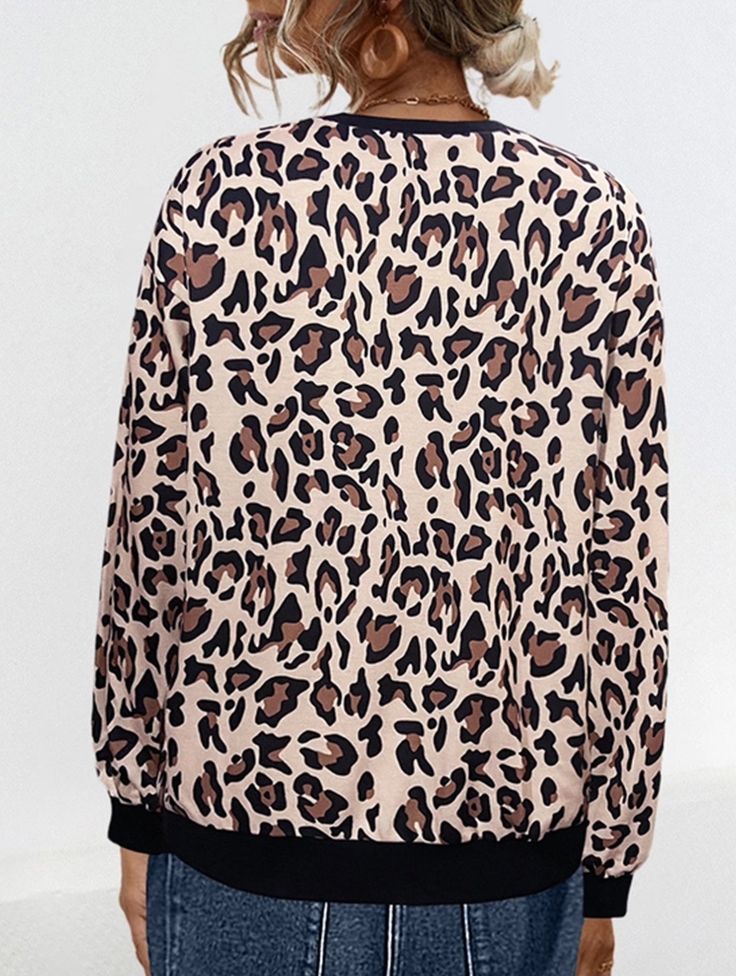Leopard Print Long-Sleeve Casual Pullover Hoodie
