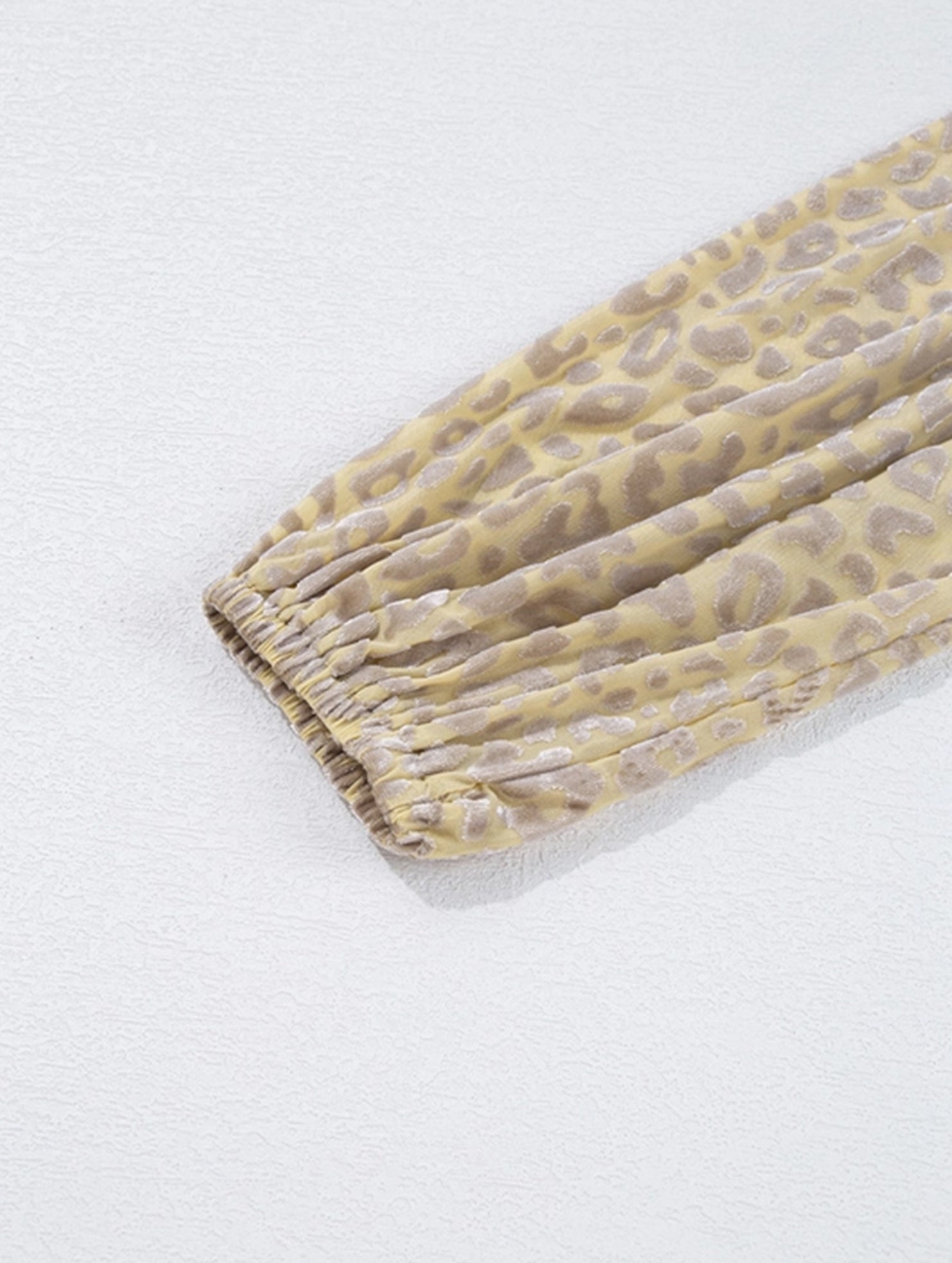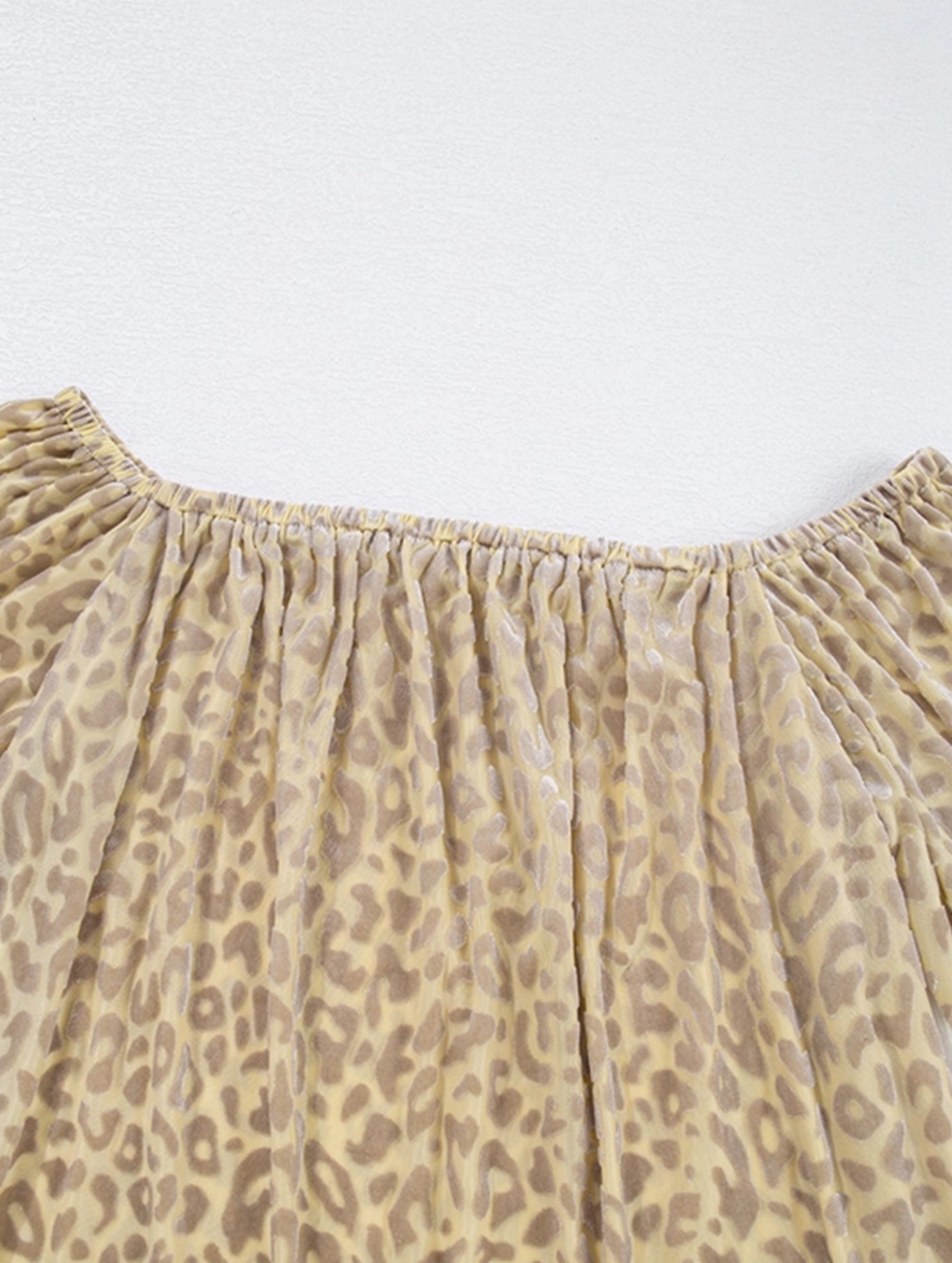 Design: Leopard print pattern with asymmetric one-line shoulder detail