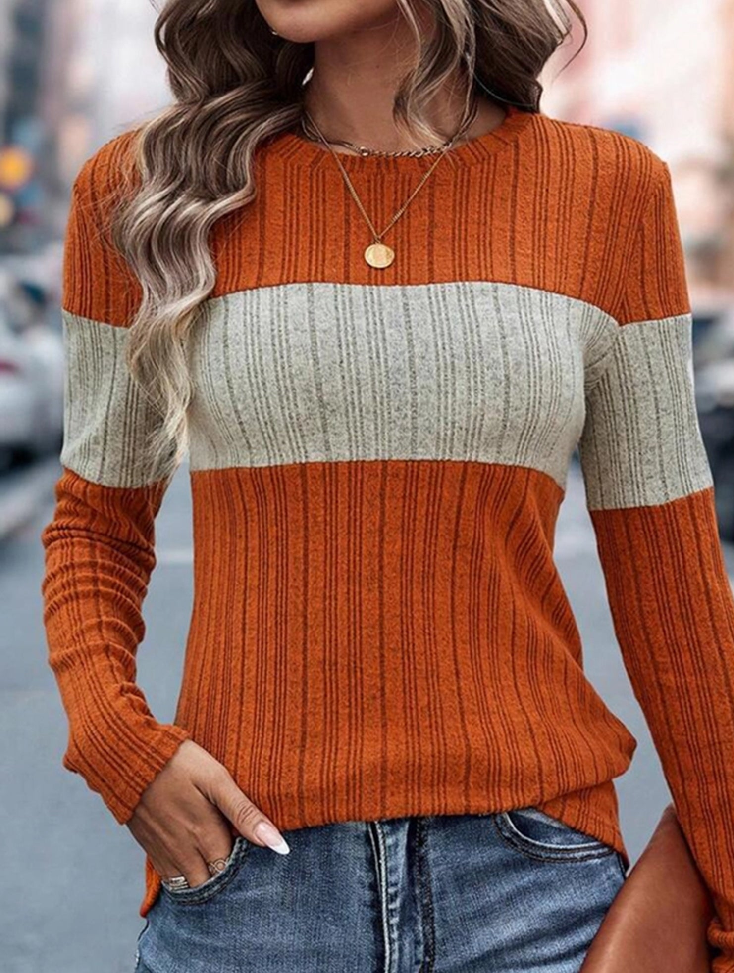 Loose casual color matching T-shirt