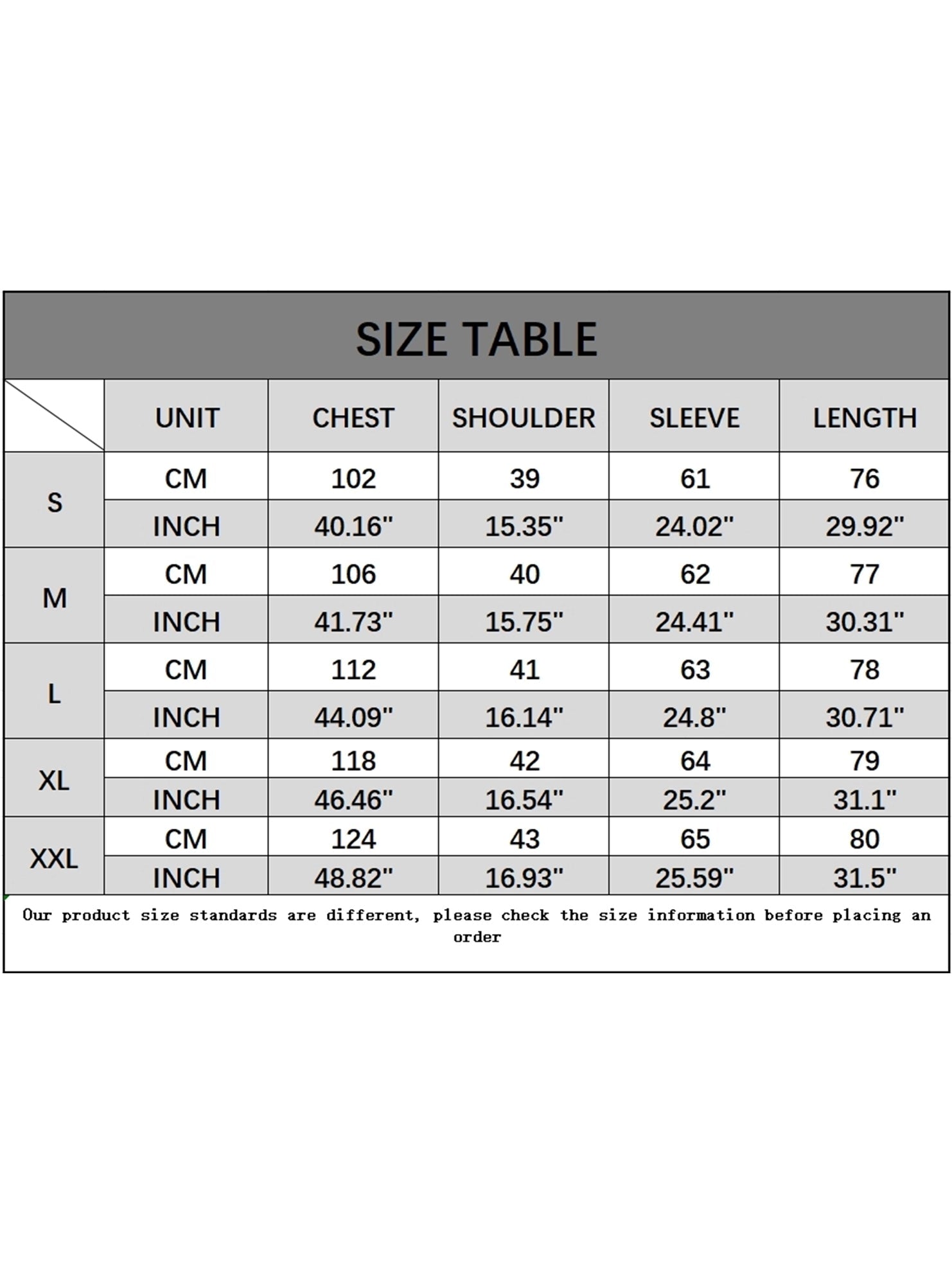 SIZES : S,M,L,XL,XXL