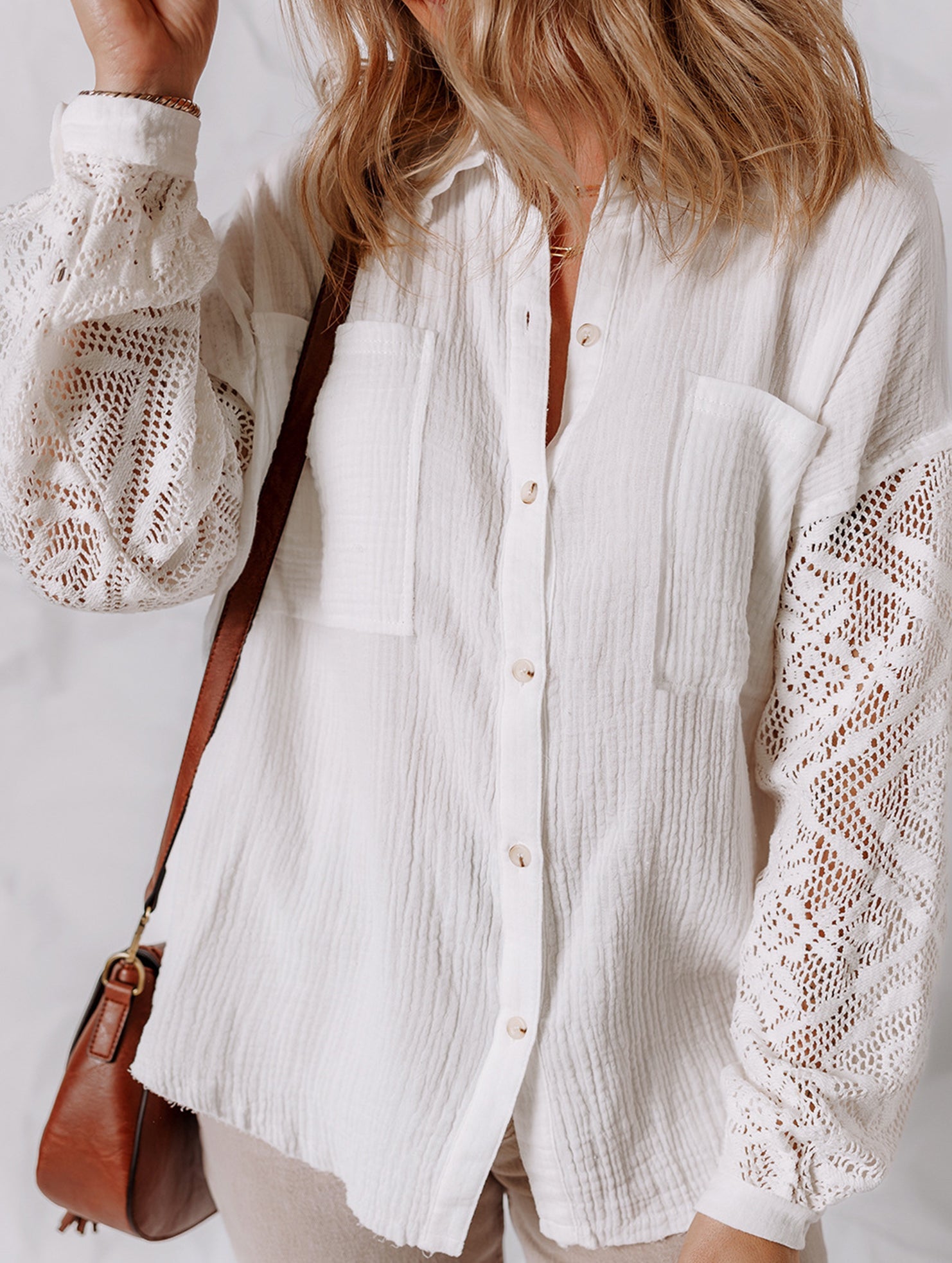 Loose lace panel long-sleeved cardigan