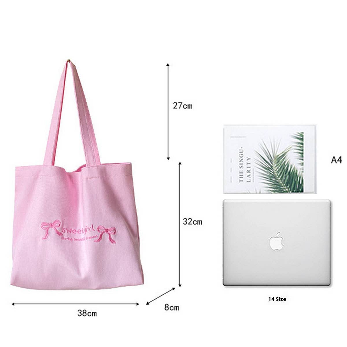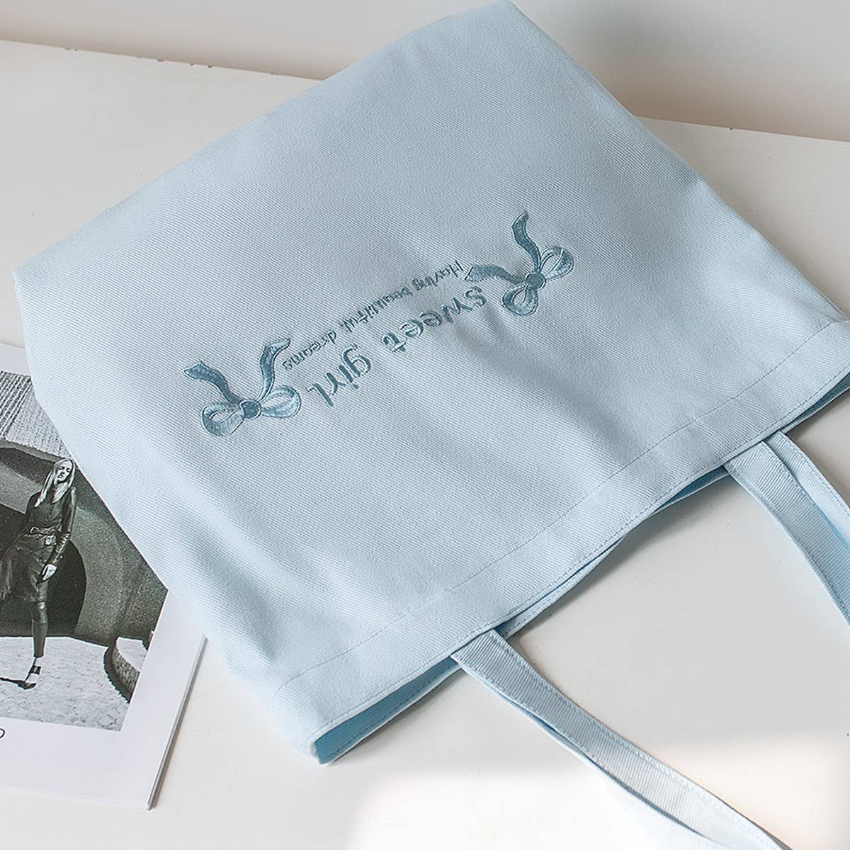 Macaron Color Embroidered Canvas Tote for Students_CWAB5627