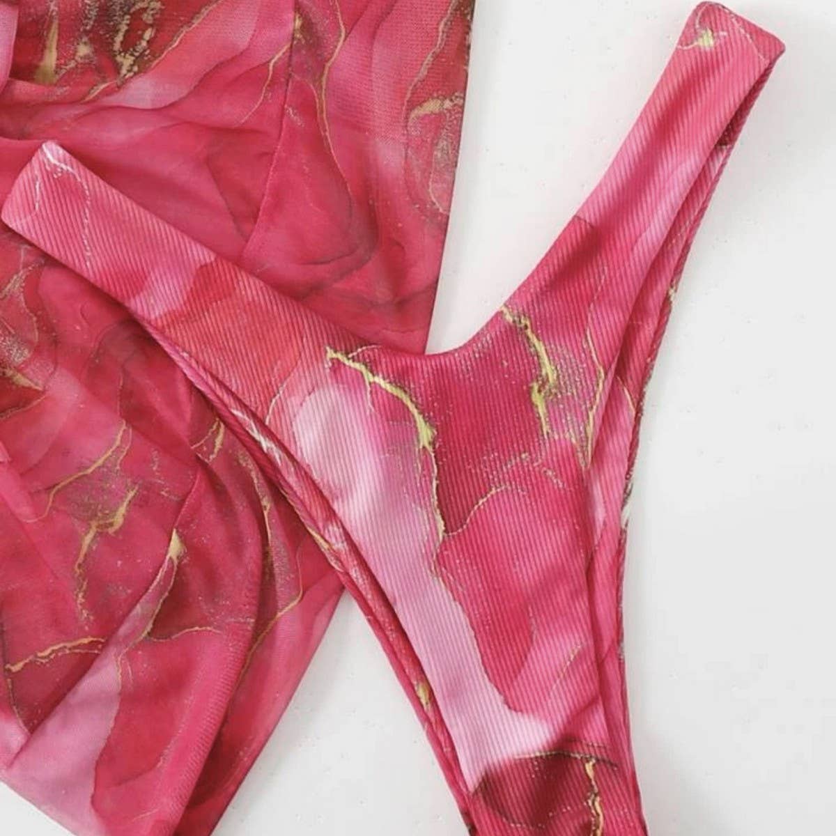 Marble Print Bikini Set - Sexy 3 Piece Swimsuit