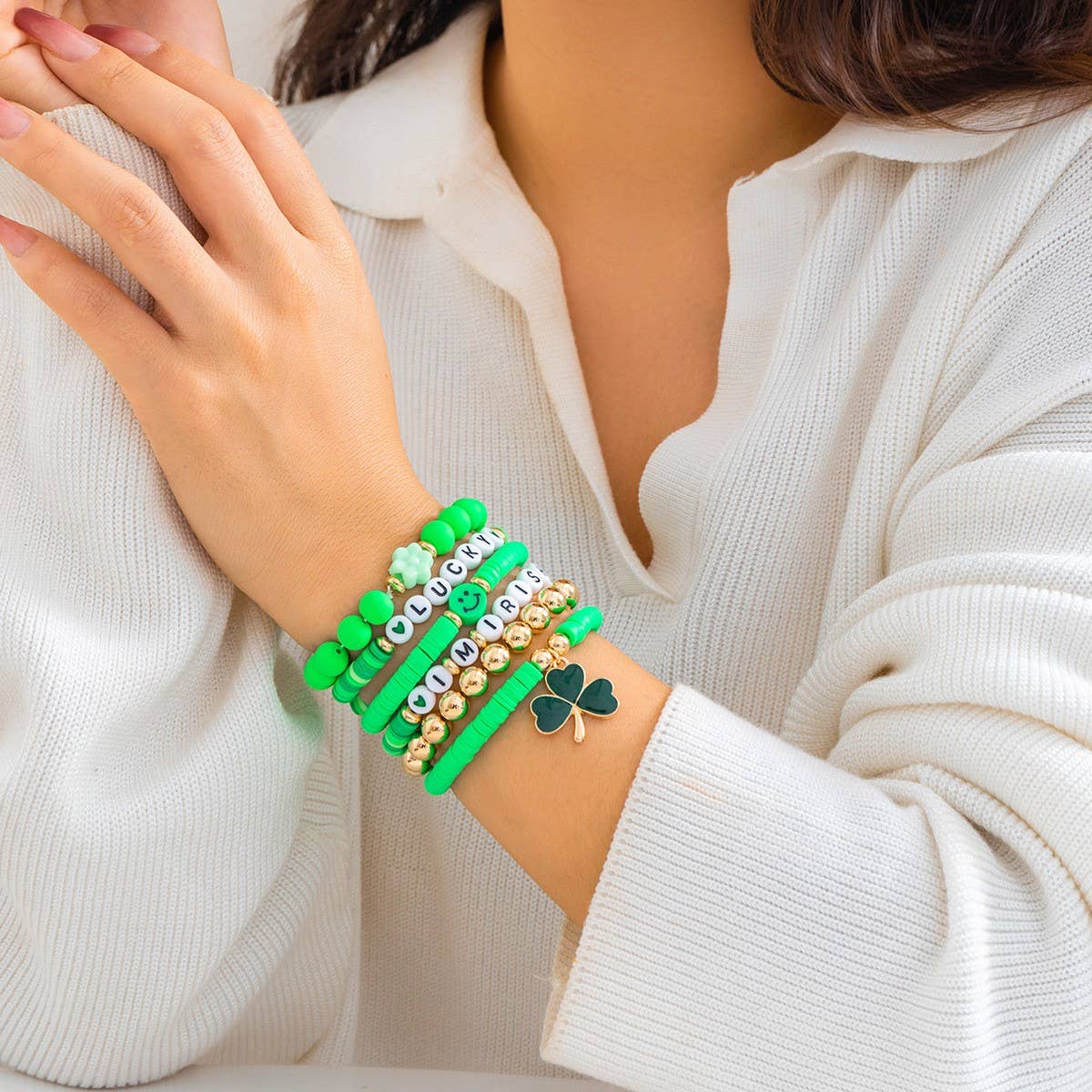 MULTI-LEAF CLOVER LETTER SIMPLE BEADED BRACELET
