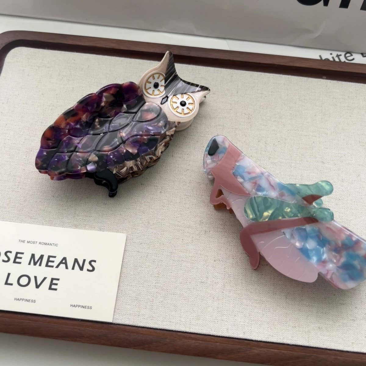 New Creative Owl & Grasshopper Acetate Hair Clip