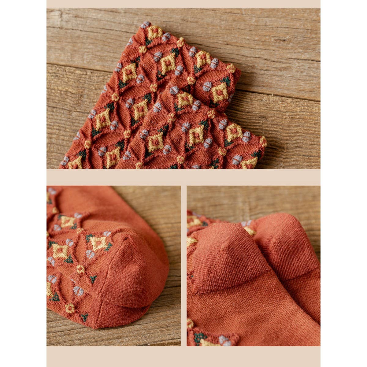 NEW DIAMOND-PATTERNED WHITE TRIM MID-TUBE SOCKS