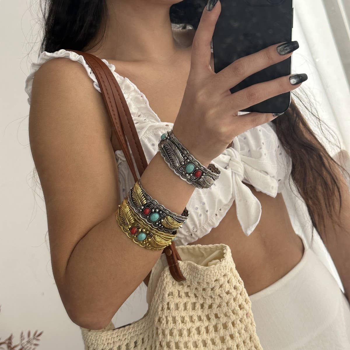NEW RETRO OVAL TURQUOISE BRACELET FOR WOMEN