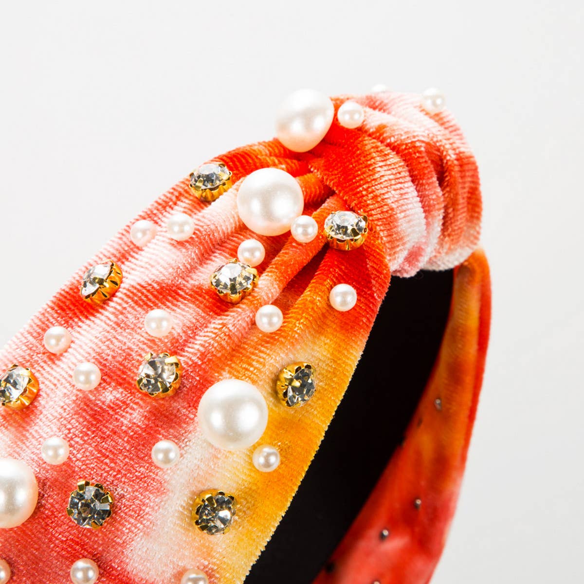NEW TIE-DYE FABRIC PEARL HEADBAND