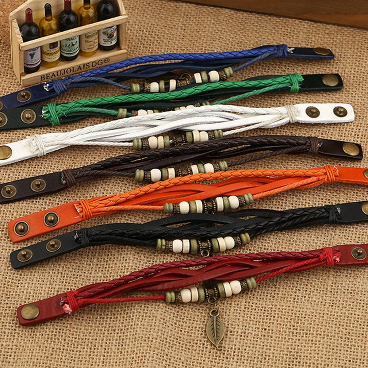 NEW WOVEN VINTAGE LEAF PENDANT COWHIDE BRACELET_CWMM4513