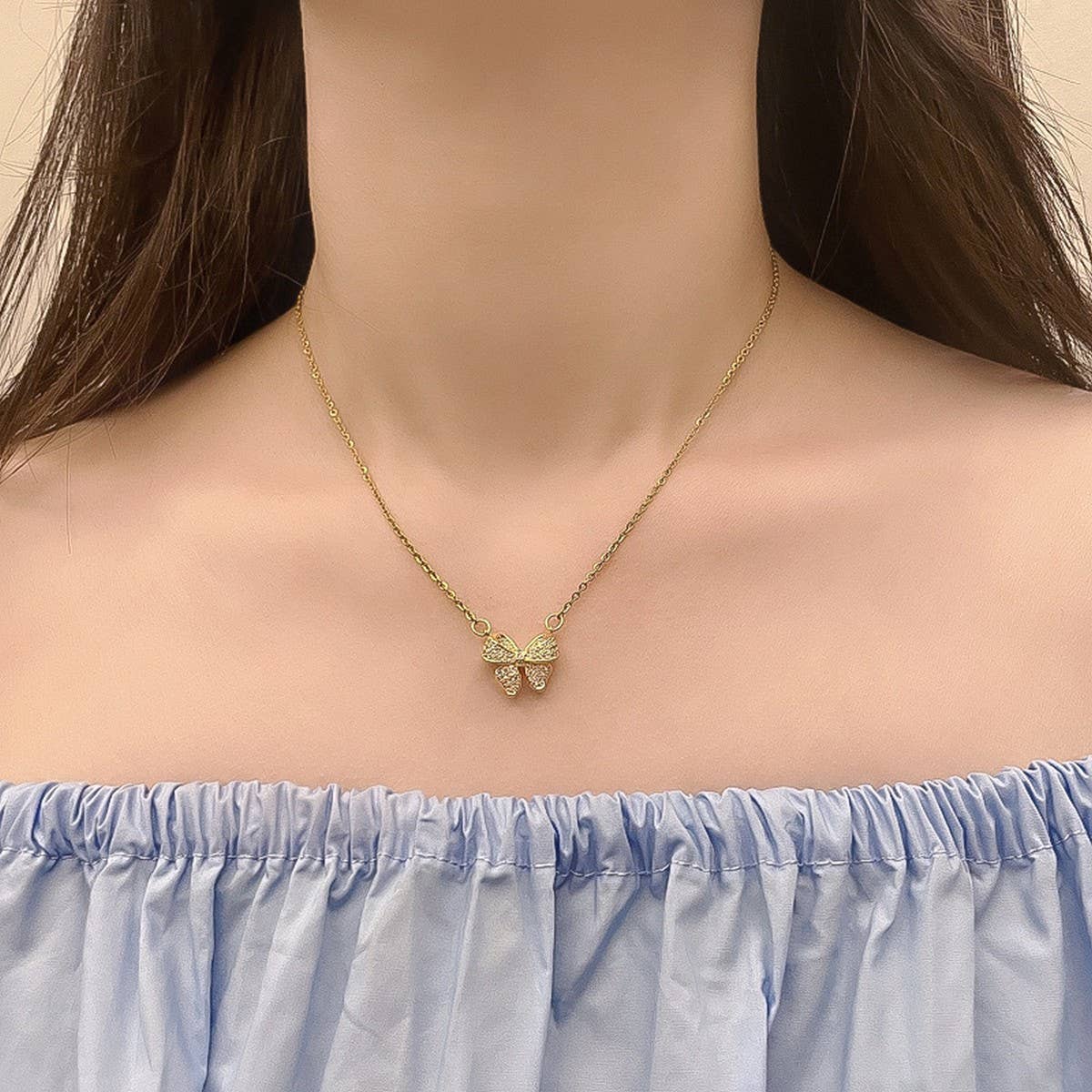 NICHE DESIGN RHINESTONE BOW NECKLACE FOR WOMEN