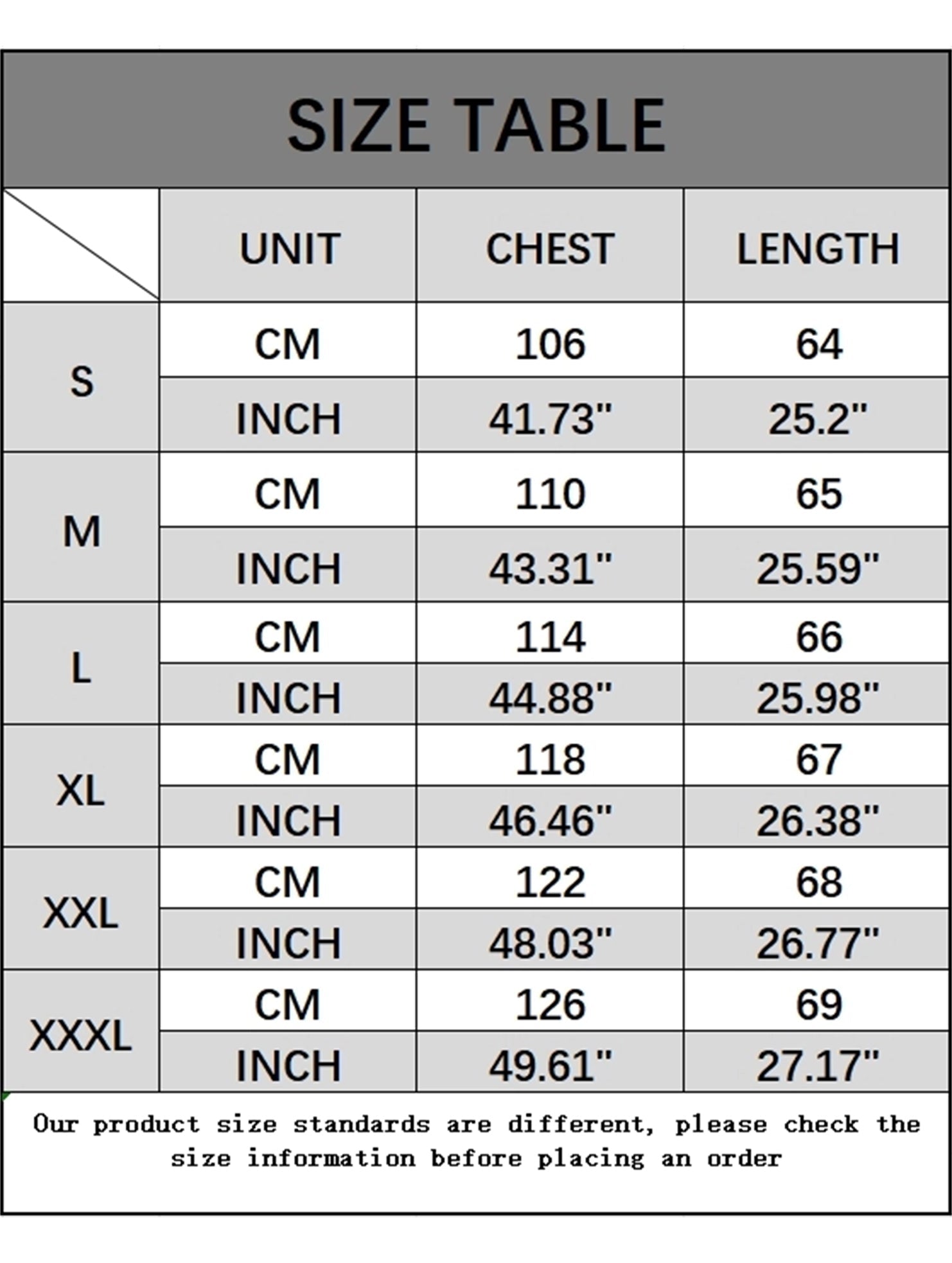 SIZES : S,M,L,XL,XXL,XXXL