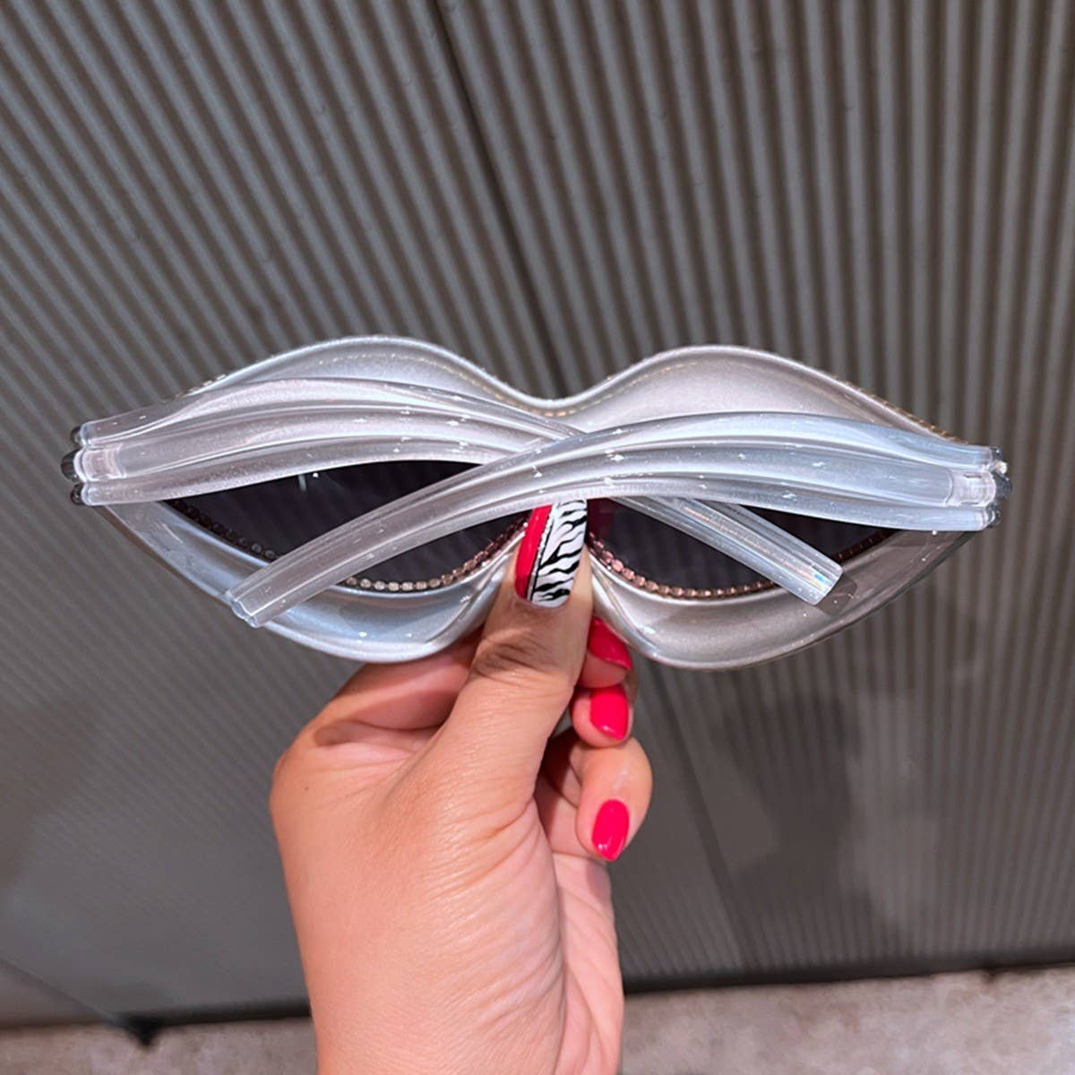 ONEPIECE SPECIALSHAPED MOUTH PEARL LINE SUNGLASSES_CWASG0763