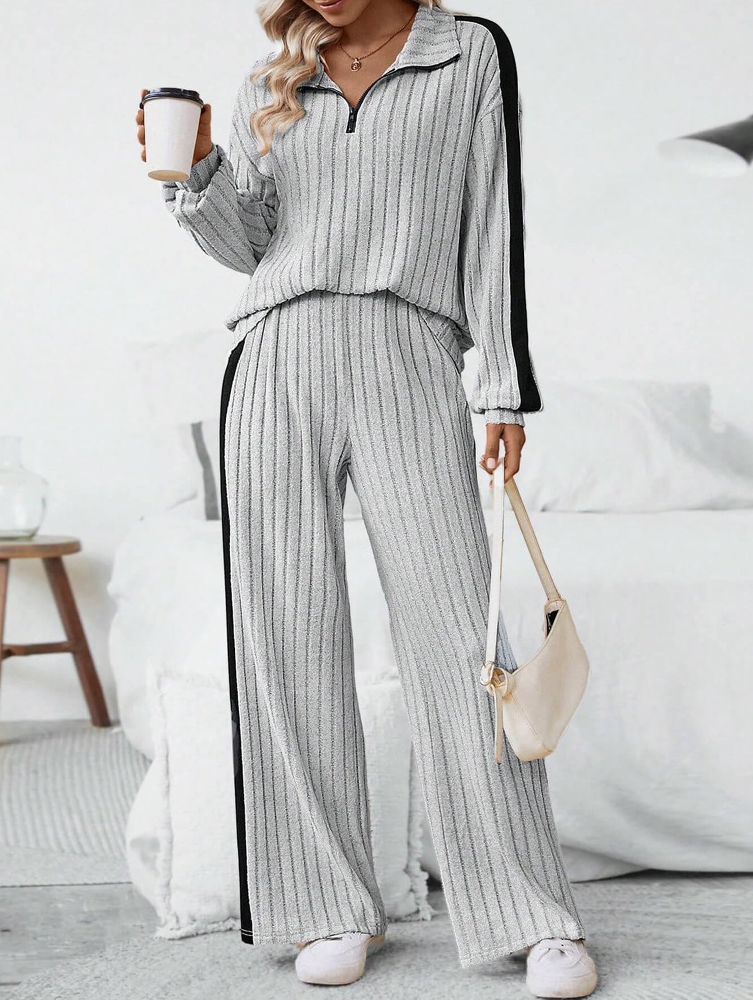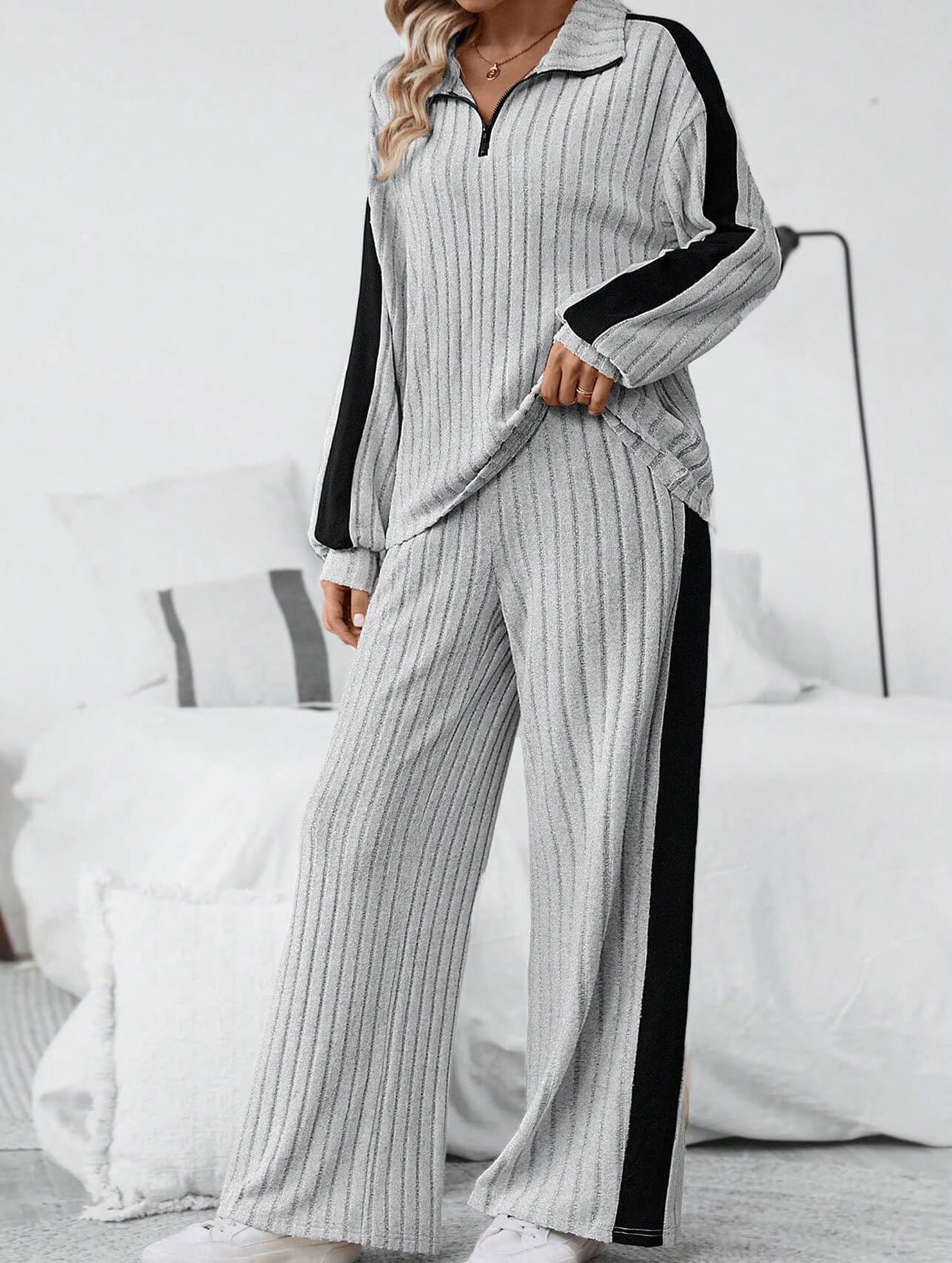 Oversized sweatshirt and wide-leg pants suit
