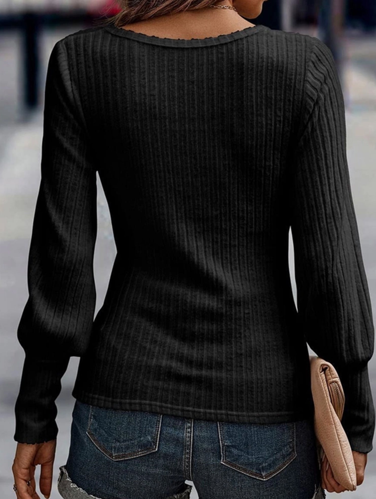 PIT STRIP SHAVED ROUND NECK LANTERN SLEEVE TOP