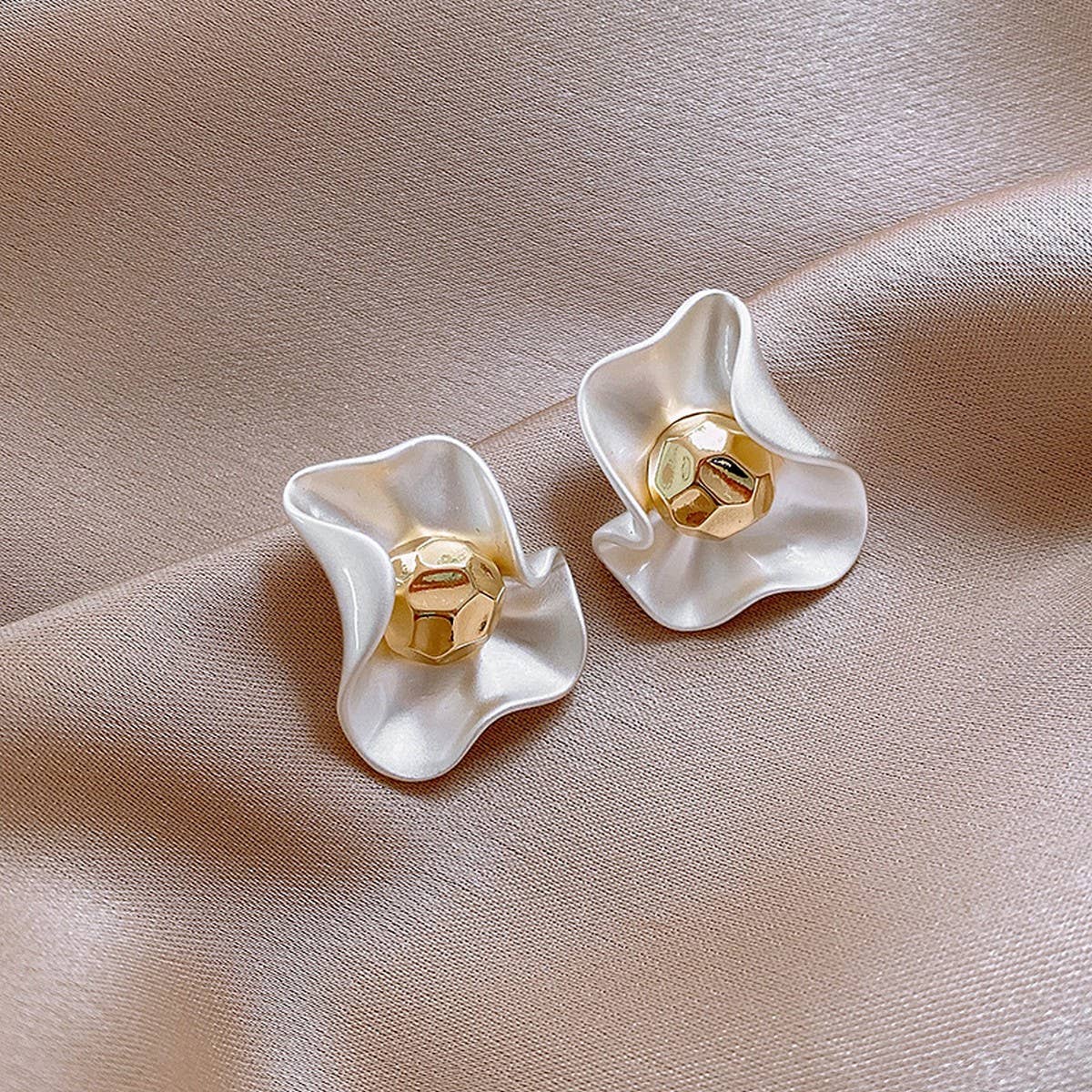 PLEATED ROUND FLOWER TEMPERAMENT EARRINGS
