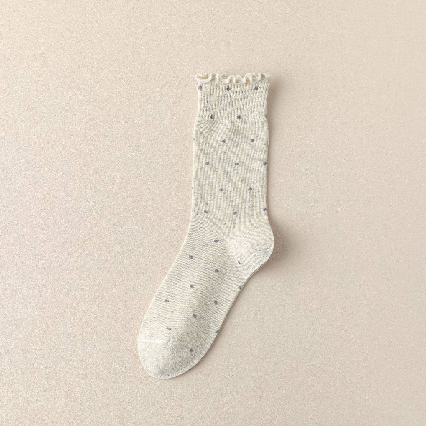 Polka Dot Pattern Ruffle Crew Socks For Womens_CWMS1394