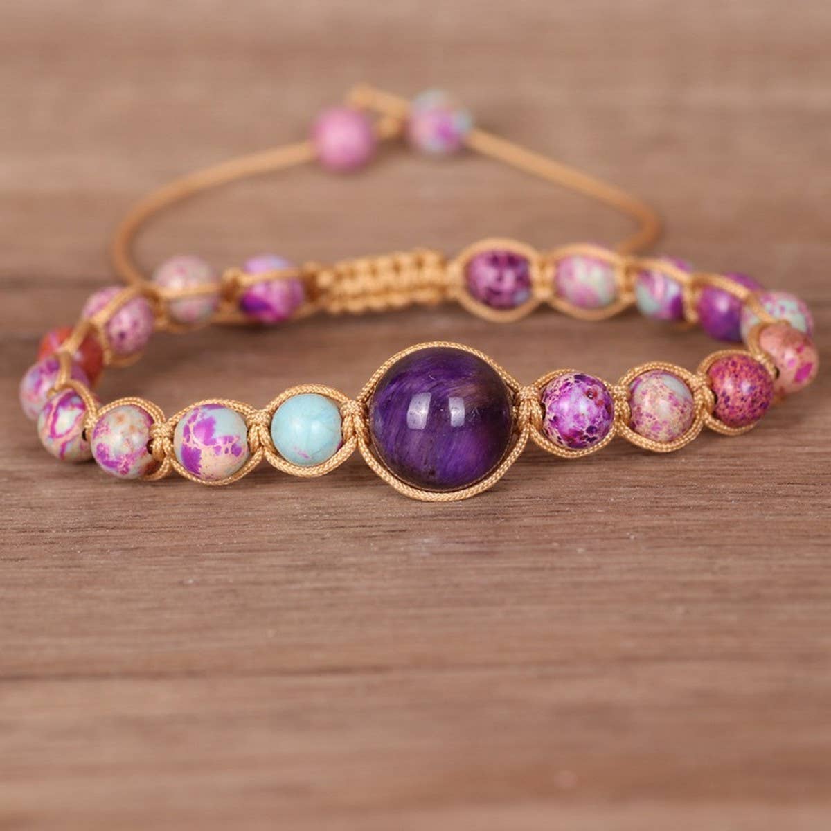 PURPLE TIGER STONE TURQUOISE BEAD BRAIDED BRACELET_CWAJE3952