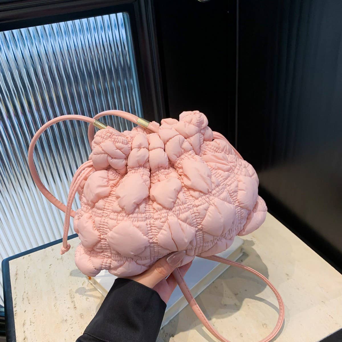 Quilted Cloud Bucket Bag Nylon Drawstring Handbag_CUAB00485