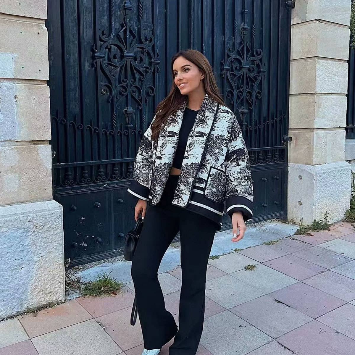 QUILTED JACKET WITH FLORAL PRINT LAPEL_CWOJA1565