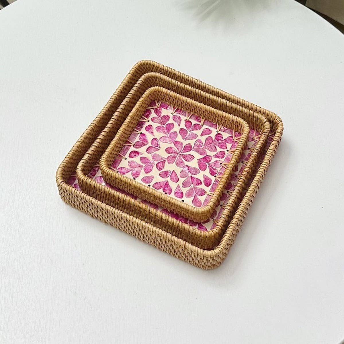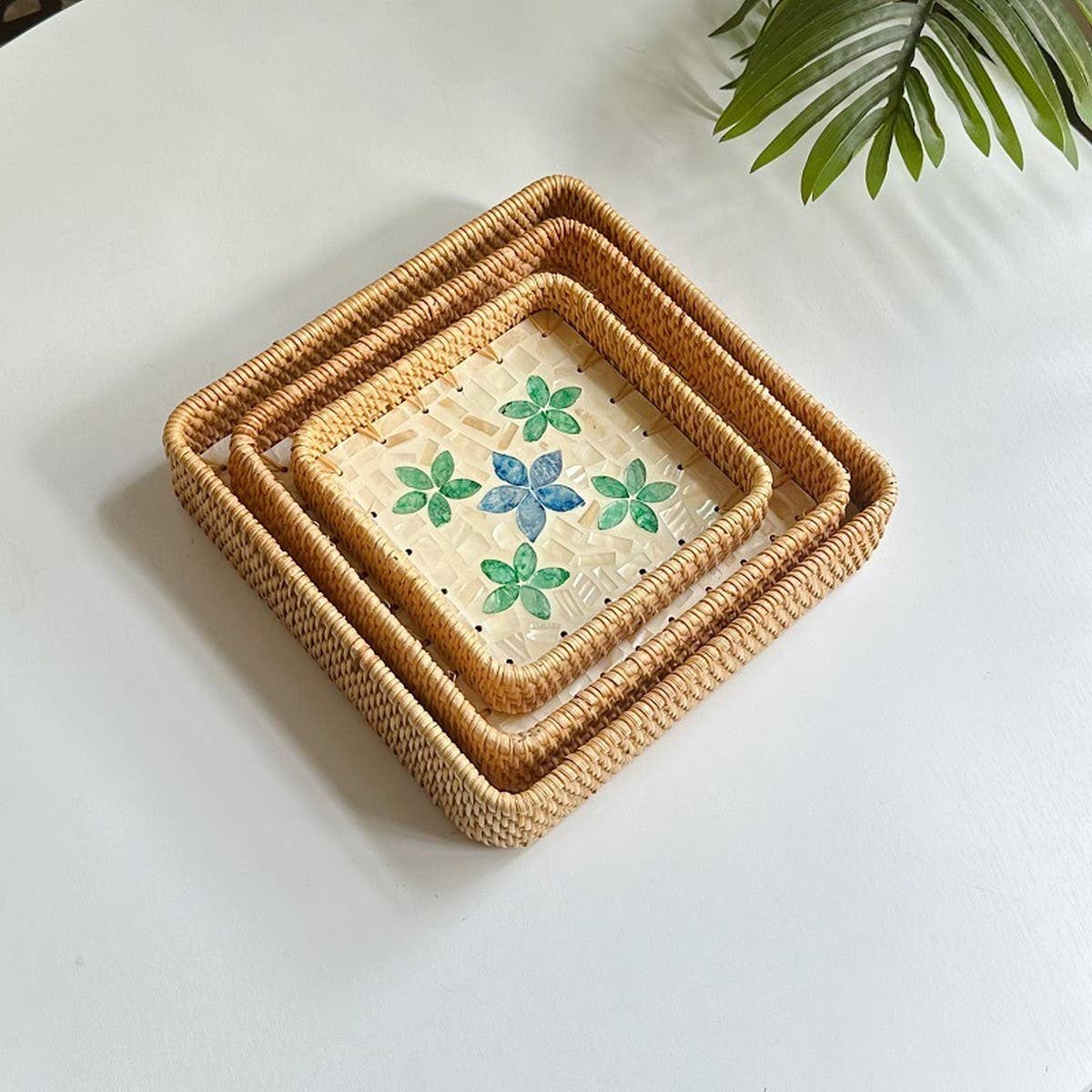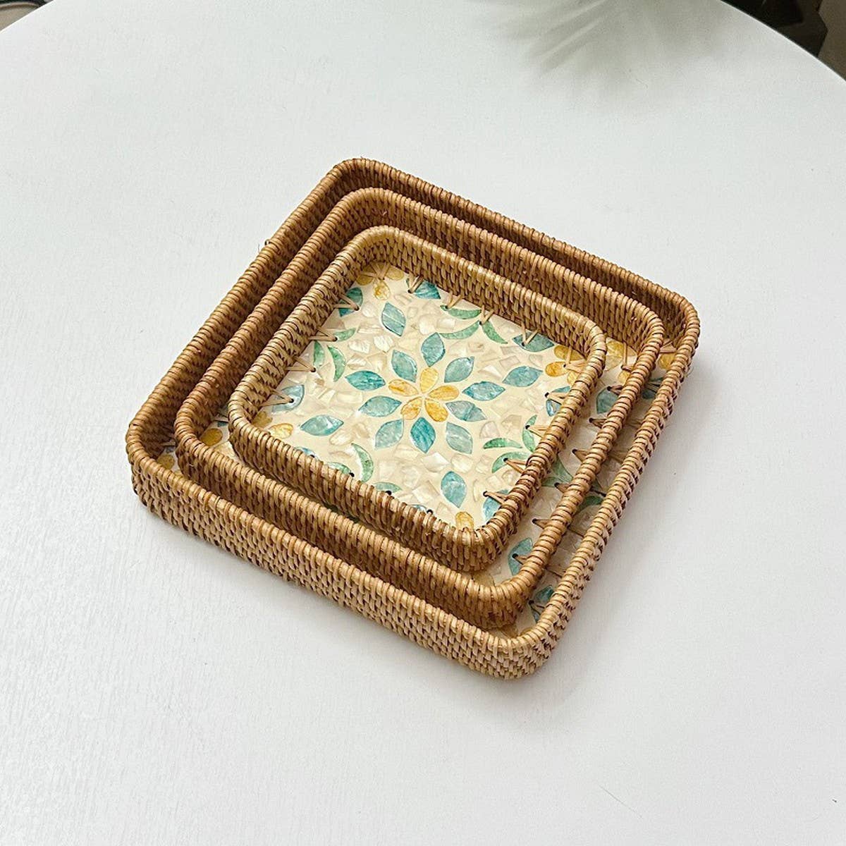 RATTAN COLORFUL SHELL FRUIT TRAY THREE-PIECE SET