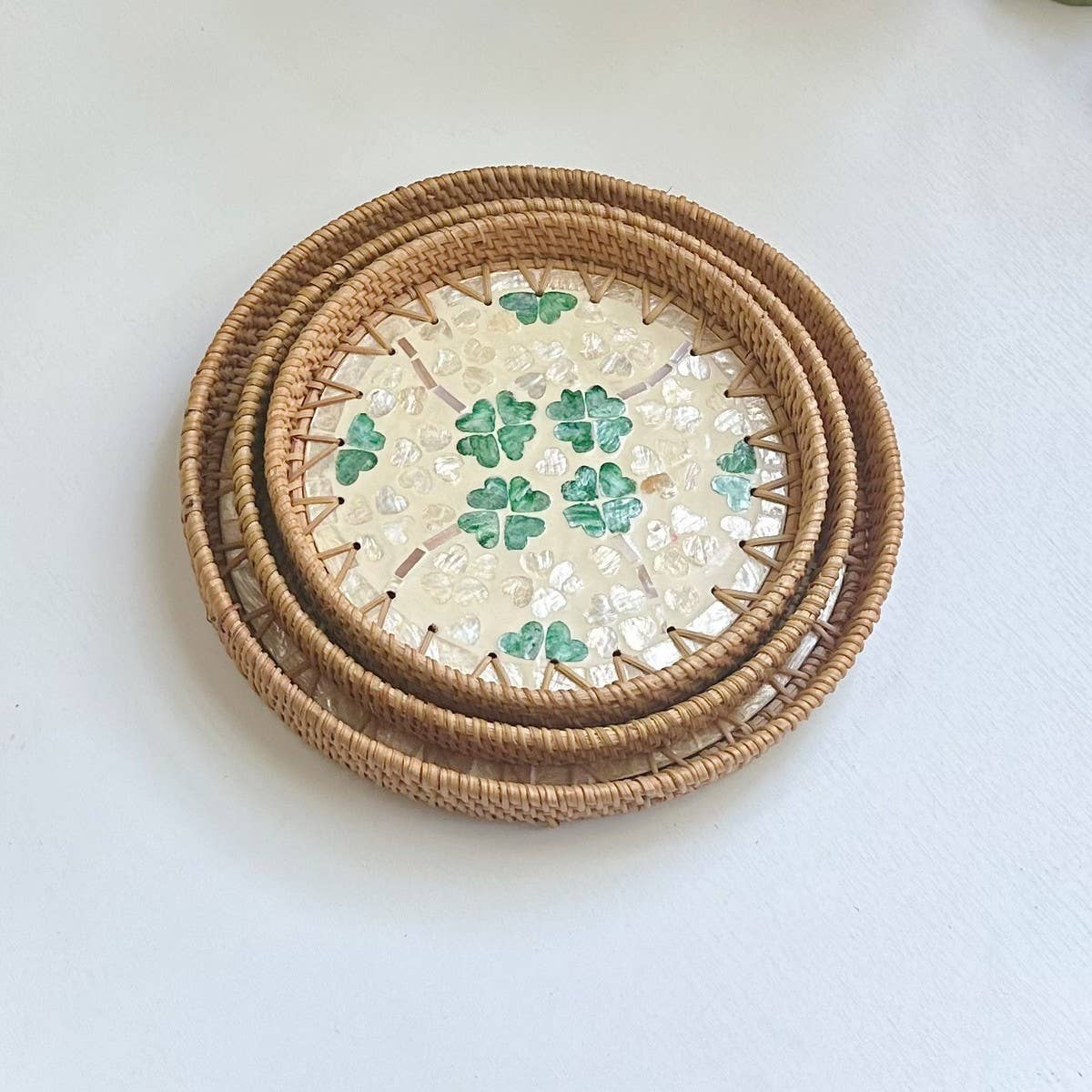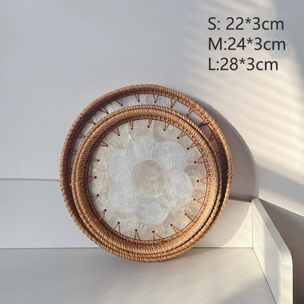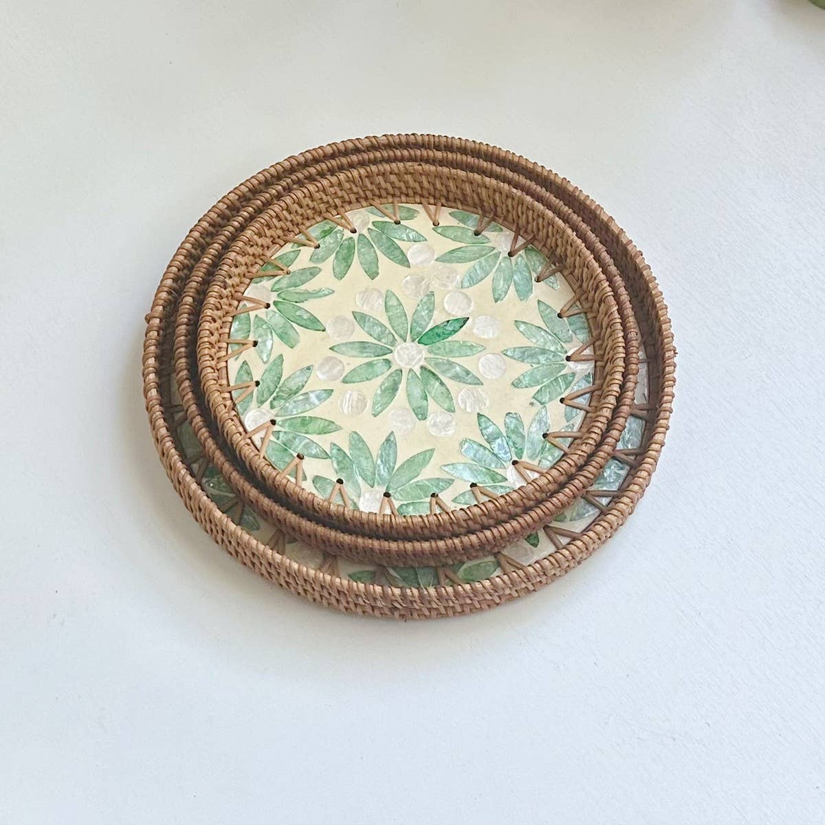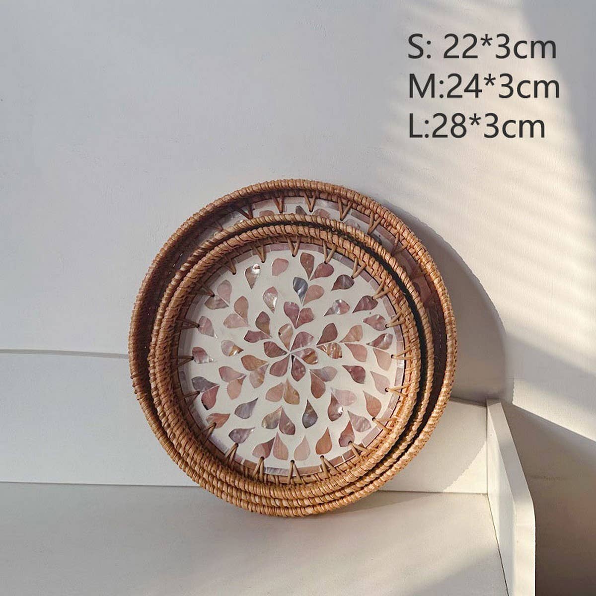 RATTAN COLORFUL SHELL FRUIT TRAY THREE-PIECE SET