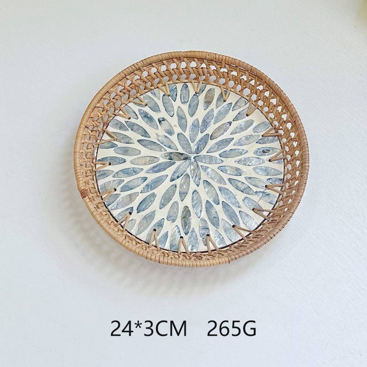 RATTAN SHELL ROUND FRUIT PLATE TEA TRAY_CWMM4537