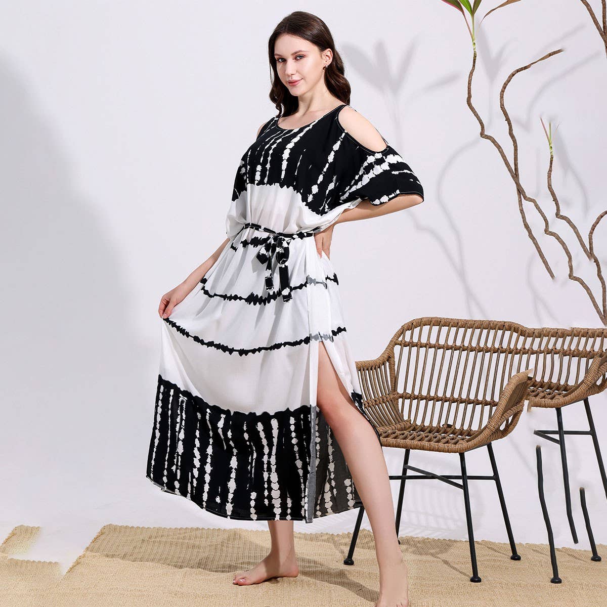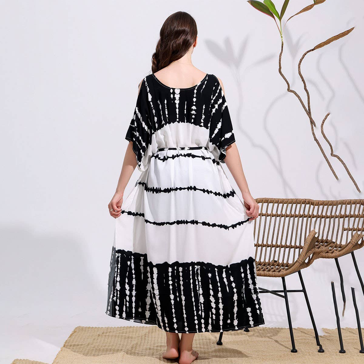 Rayon Tie-Dye Off Shoulder Beach Cover-Up_CWMM6152