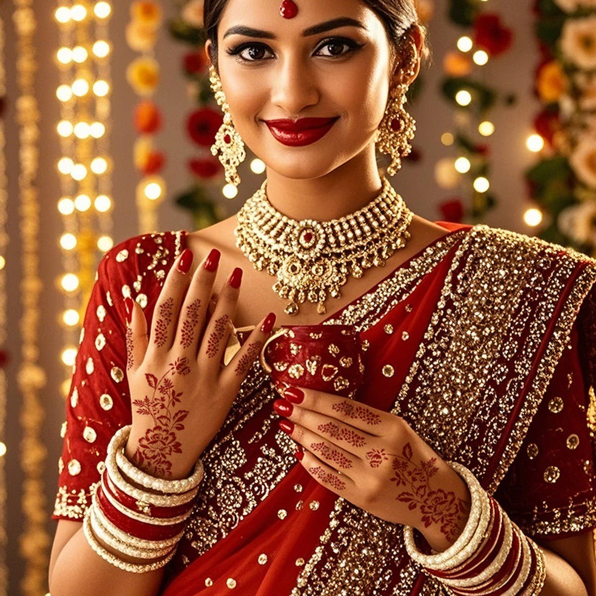 Realistic Henna Tattoo Stickers Brown Red Lace_CWMM8361