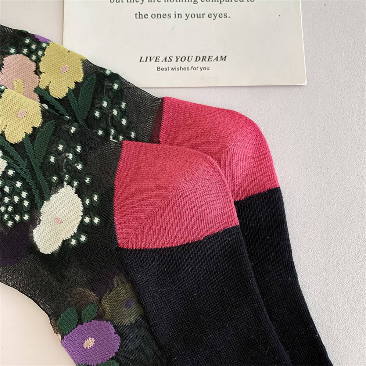 RETRO CASUAL FLORAL BLACK SOCKS_CWMS0562