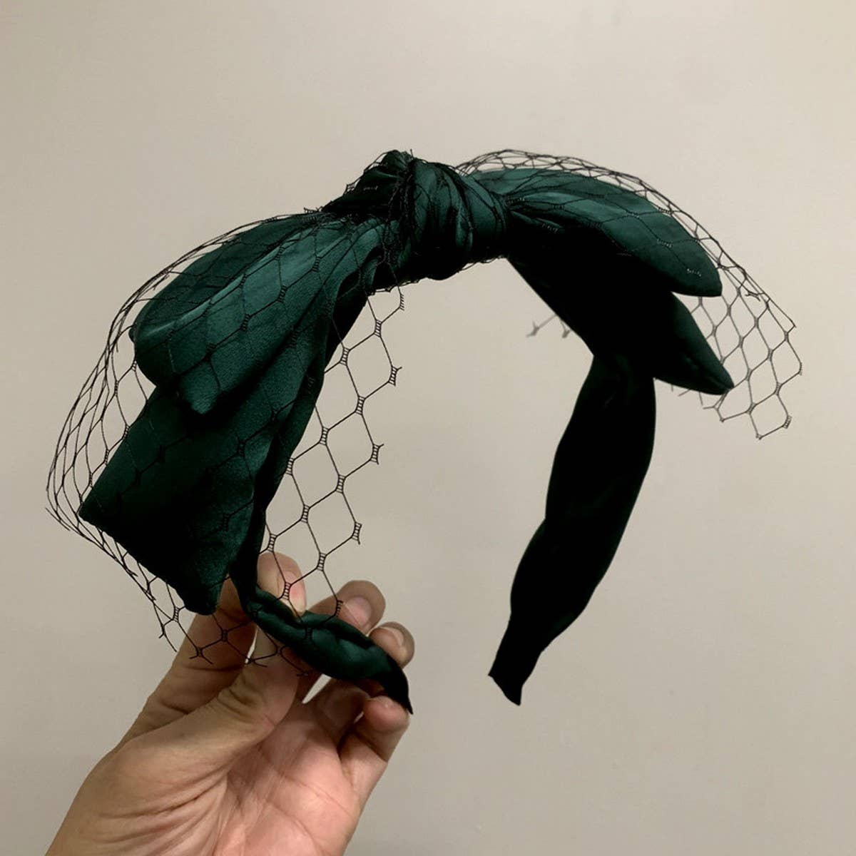 RETRO FISHNET DOUBLE LAYER BIG BOW HEADBAND
