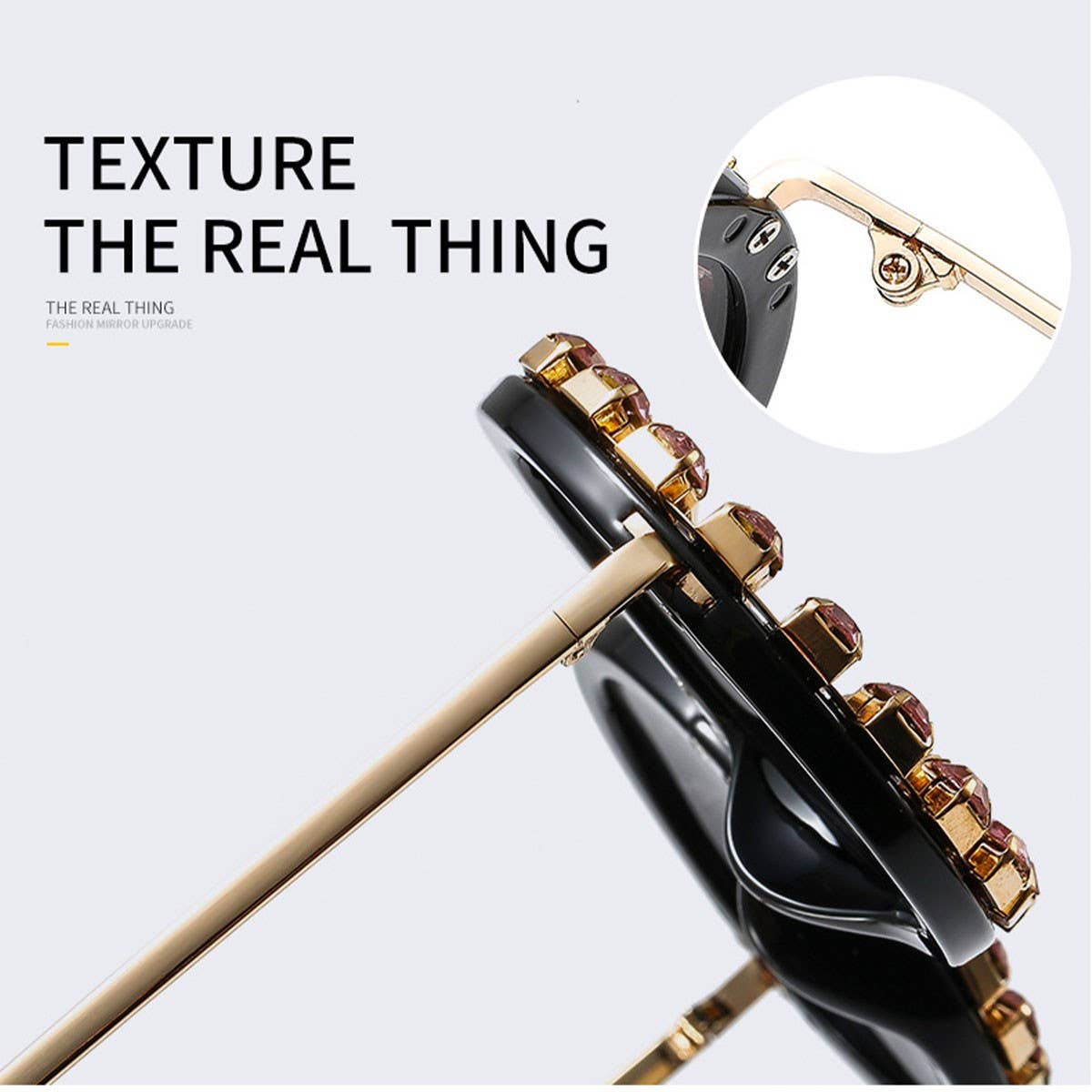 RETRO ROUND FRAME RHINESTONE METAL RIVET GLASSES