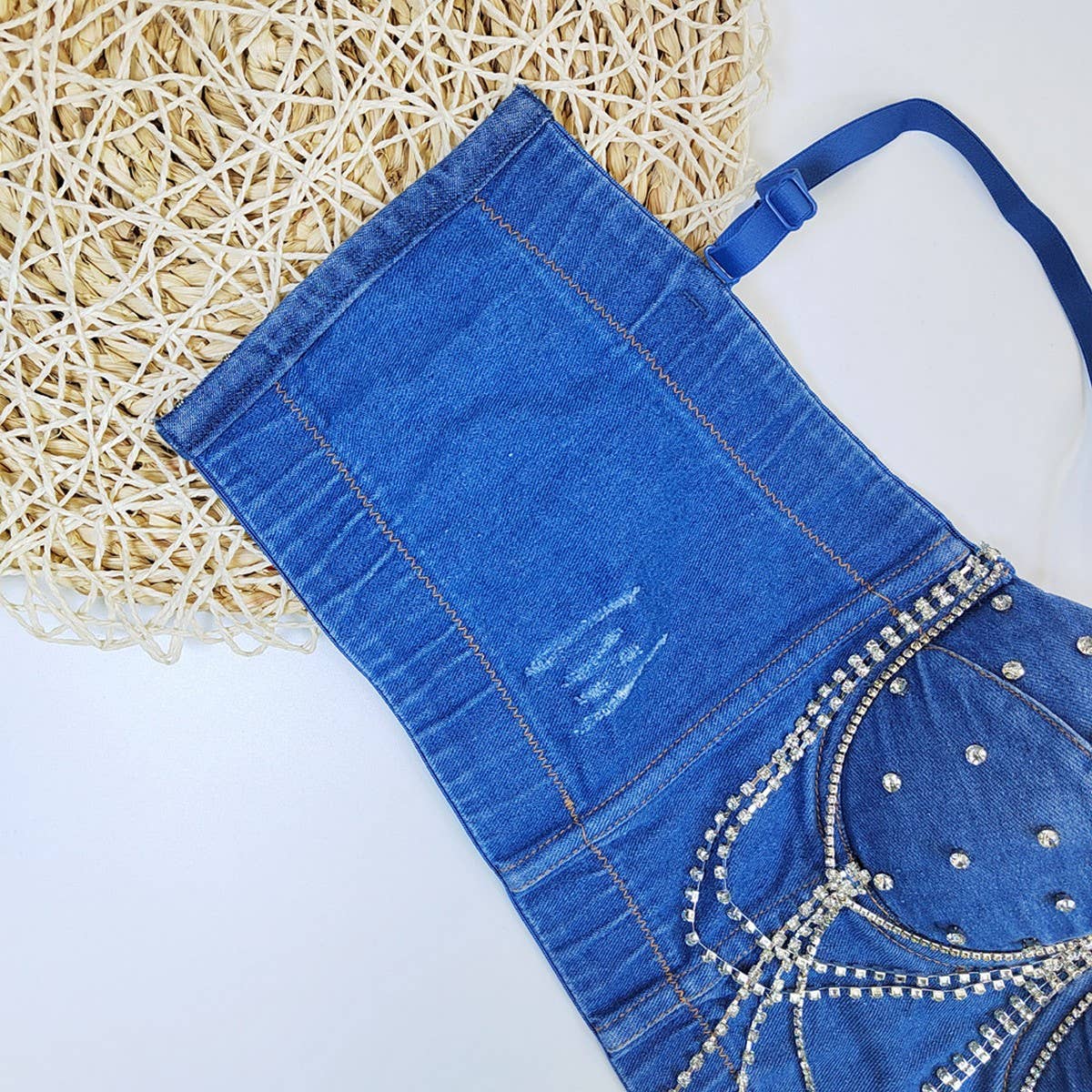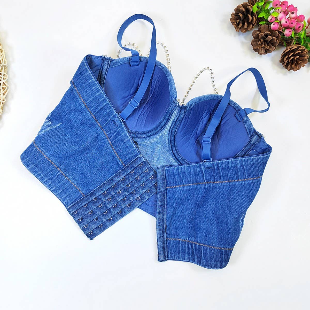 RHINESTONE CHAIN WAIST HERRINGBONE CORSET