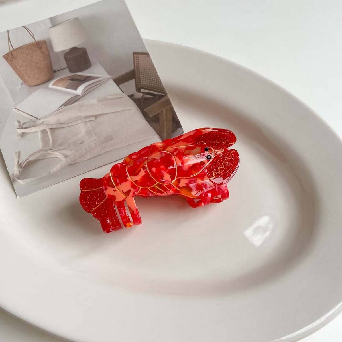 Sea Shell & Lobster Hair Claw, Ocean Animal Clip