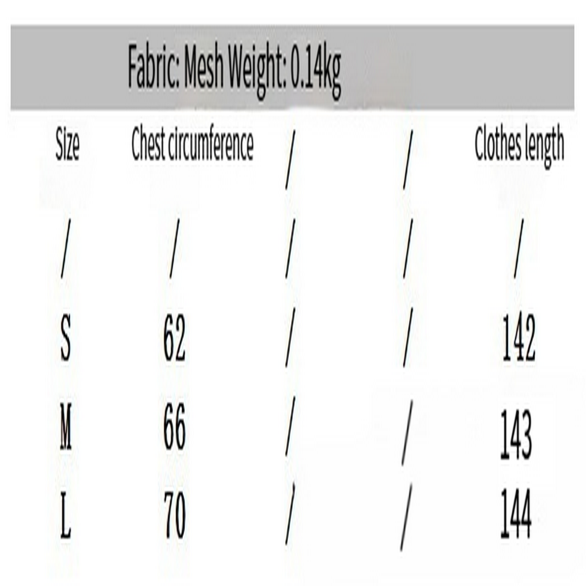 '- Material: Polyester (polyester fiber)\n- Size: S, M, L\n- Weight: 140g
