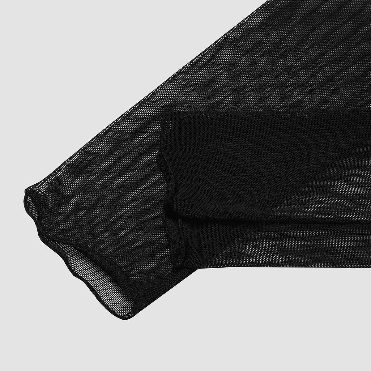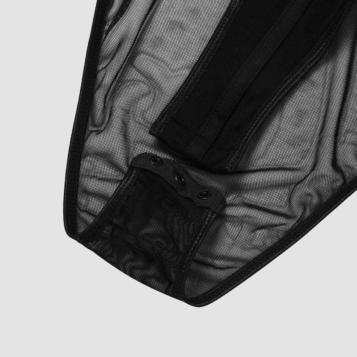 SEXY DOUBLE-LAYER MESH RUFFLED BODYSUIT