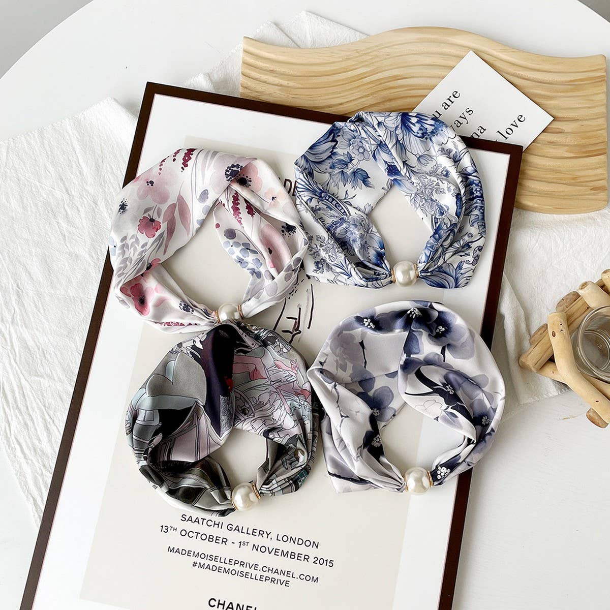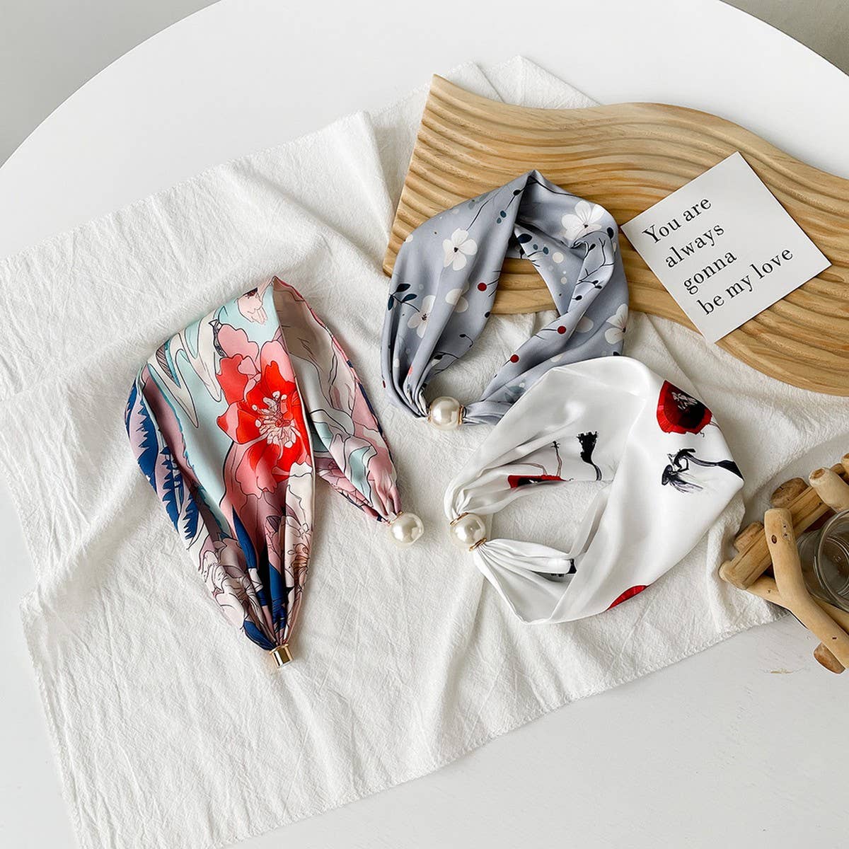 Silky Print Scarf Necklace ? Pearl Magnetic Clasp