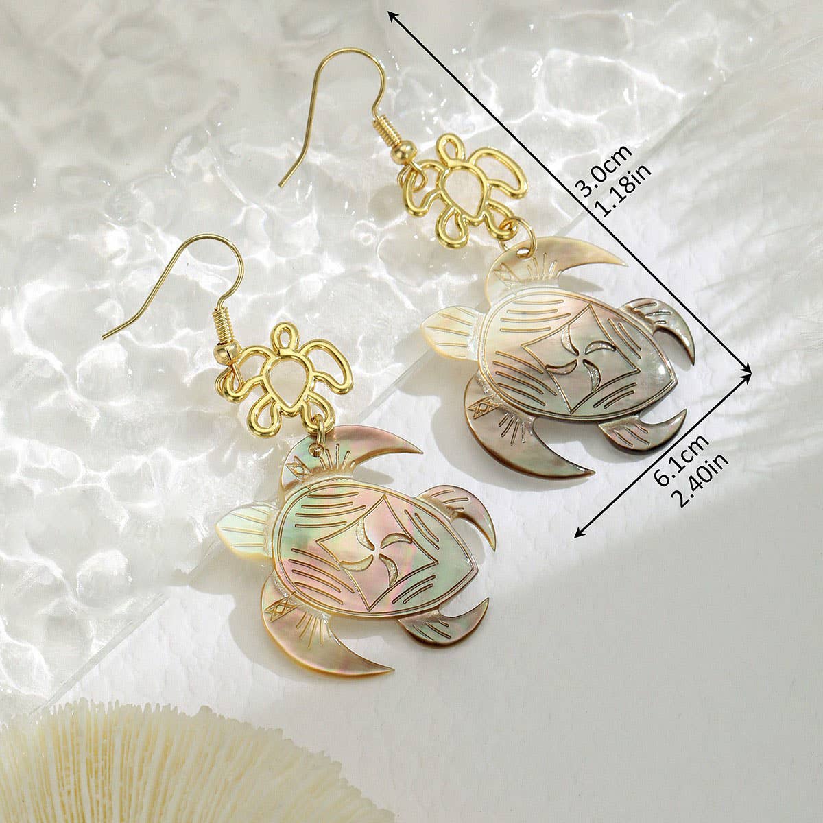 SIMPLE BLACK SHELL CARVED TURTLE EARRINGS_CWMM4328