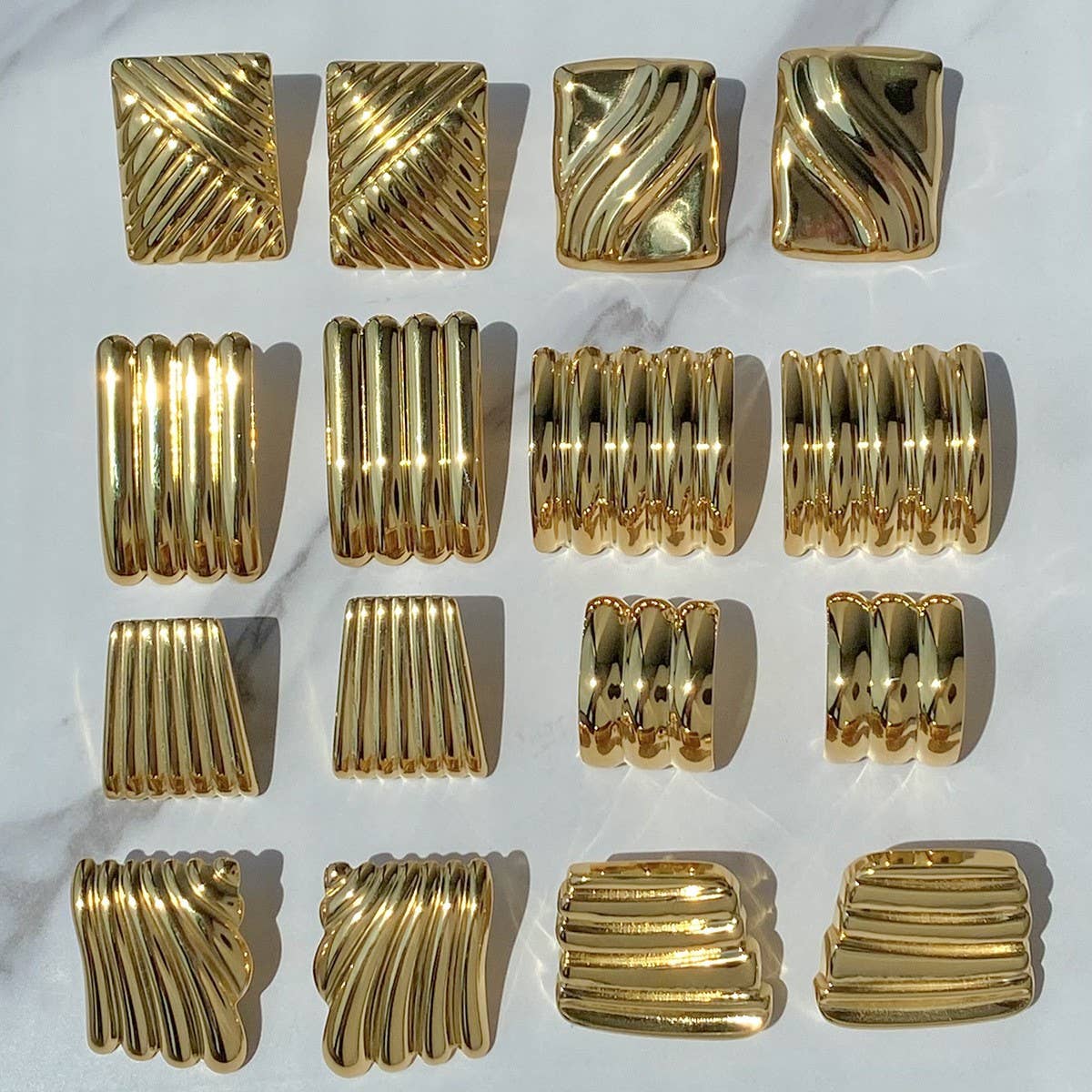 SIMPLE GEOMETRIC SQUARE WAVE TEXTURE EARRINGS