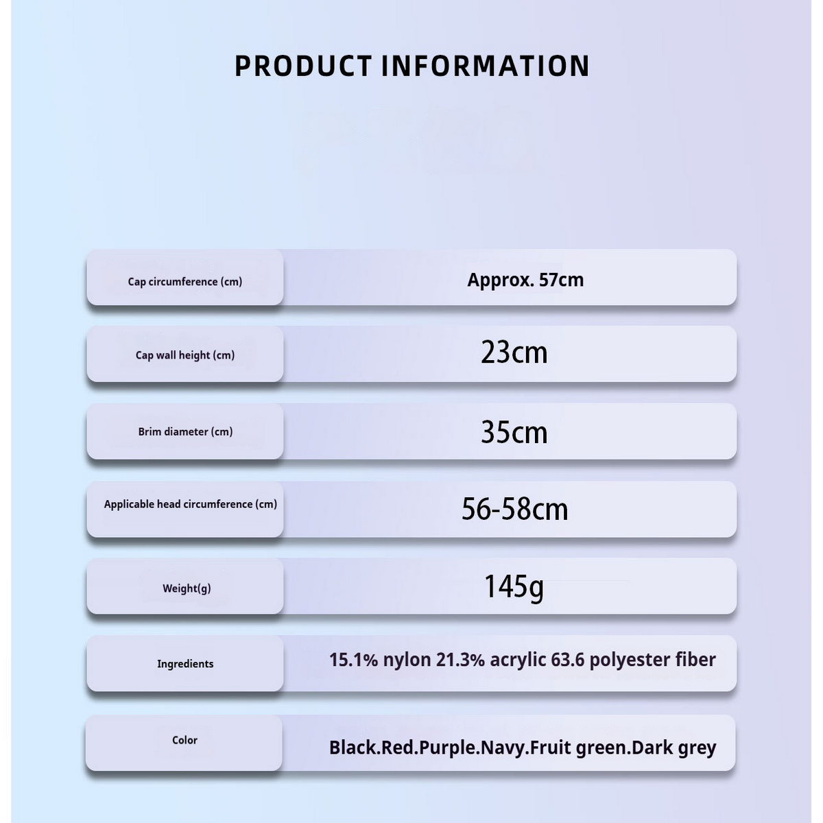 - Size: OS (elastic fit for head circumference 54-60cm)