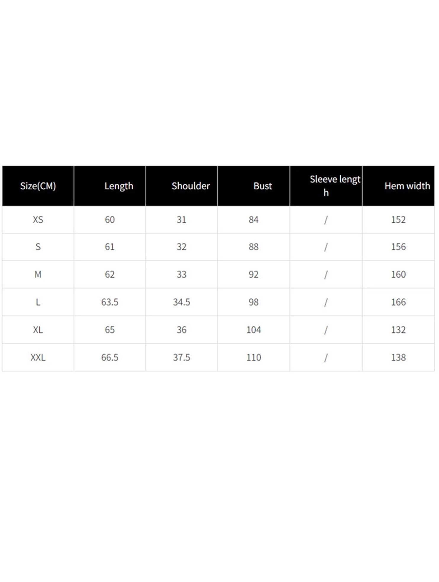 Sizes Available: XS, S, M, L, XL, XXL
