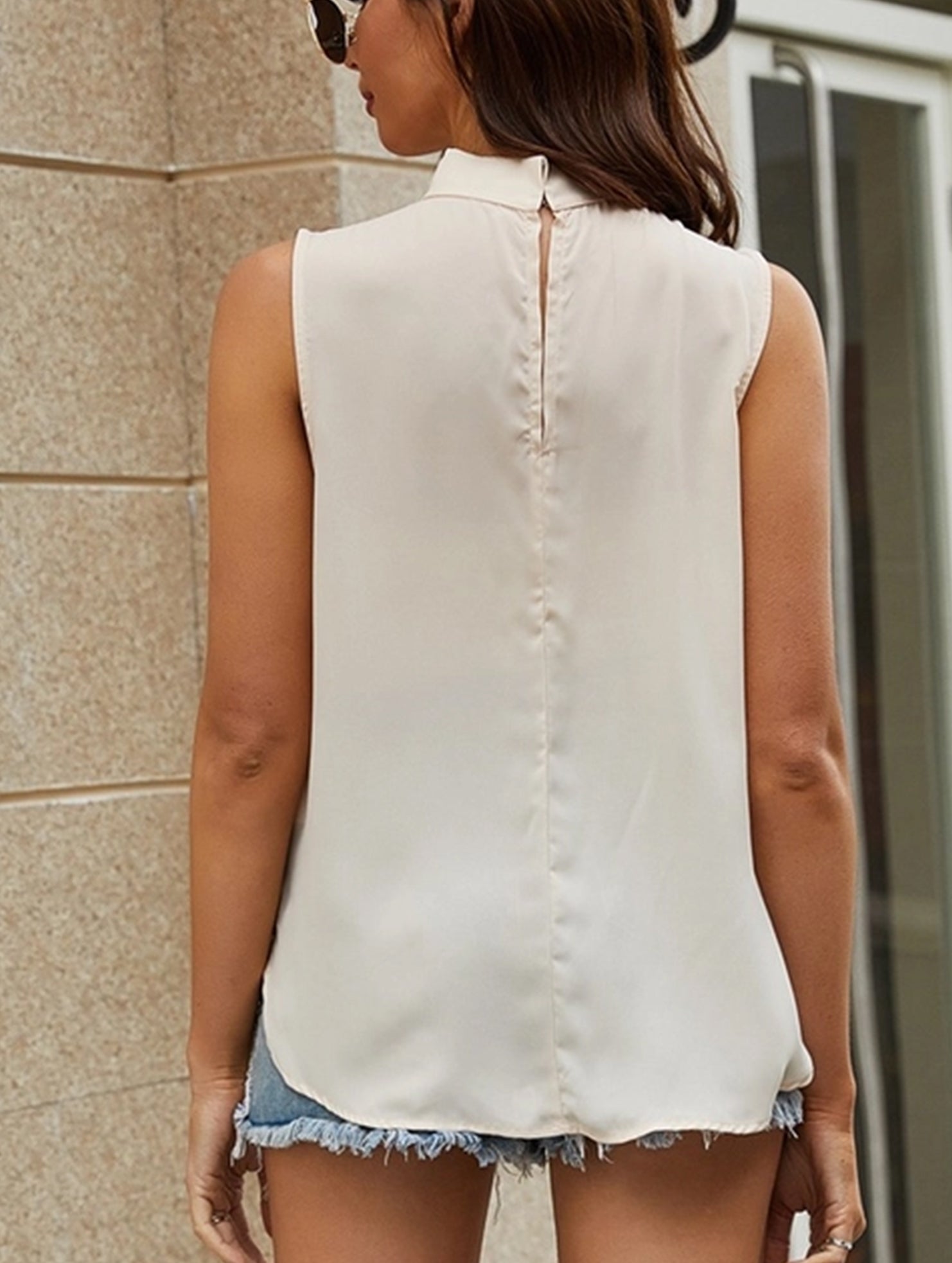 Sleeveless Round Neck Woven Button Back Top ??Lightweight Elegance for Every Day