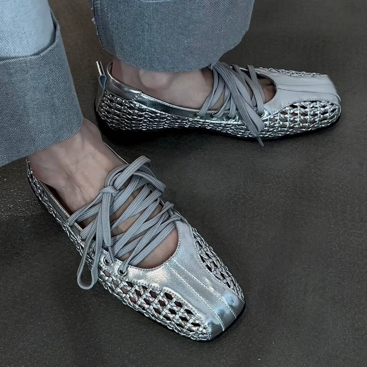 Soft Leather Retro Ballet Flats with Laces_CWSHF0154