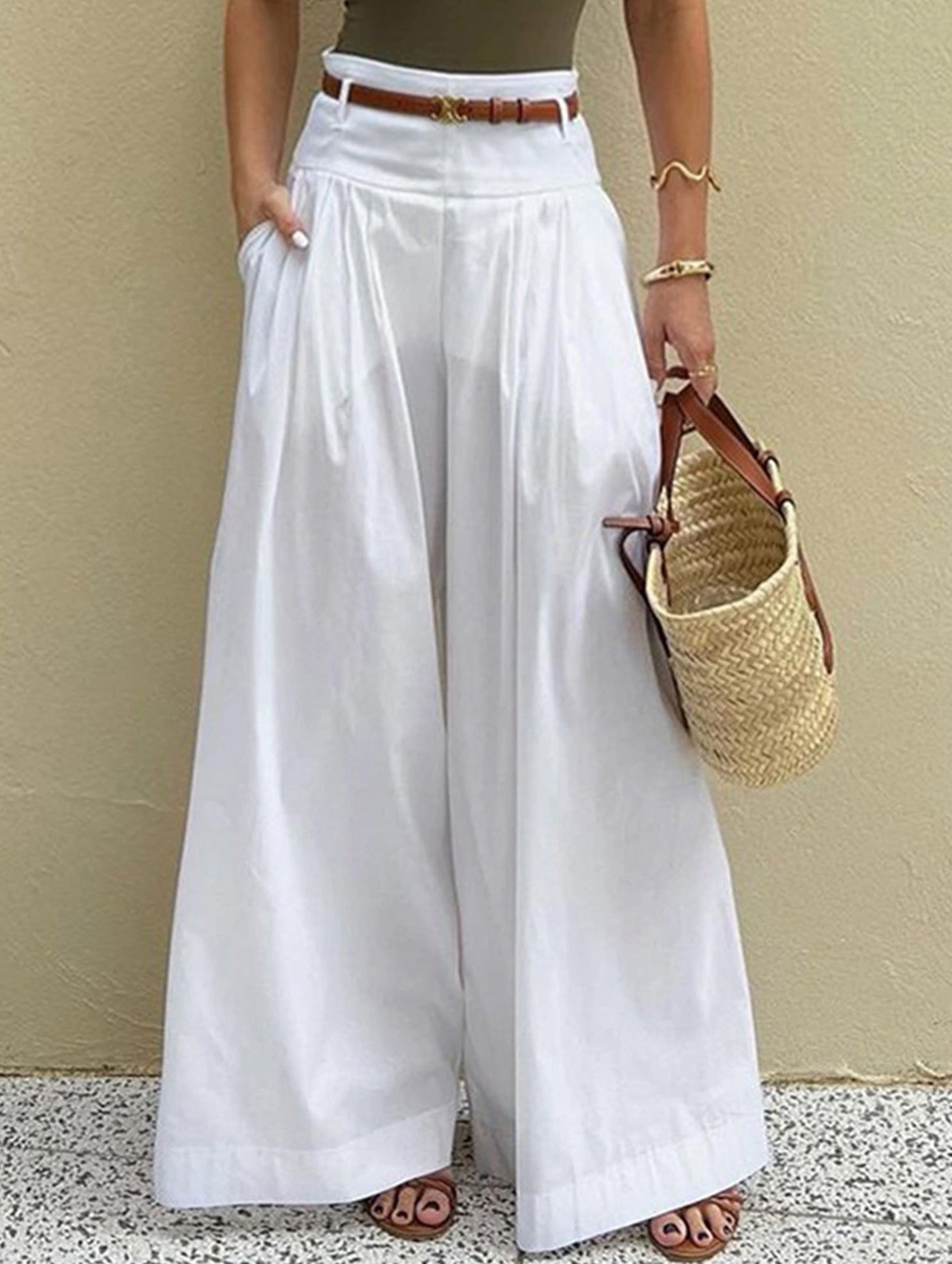 High-Waisted Wide-Leg Pants ??Solid Color, Casual & Chic, S??œXL