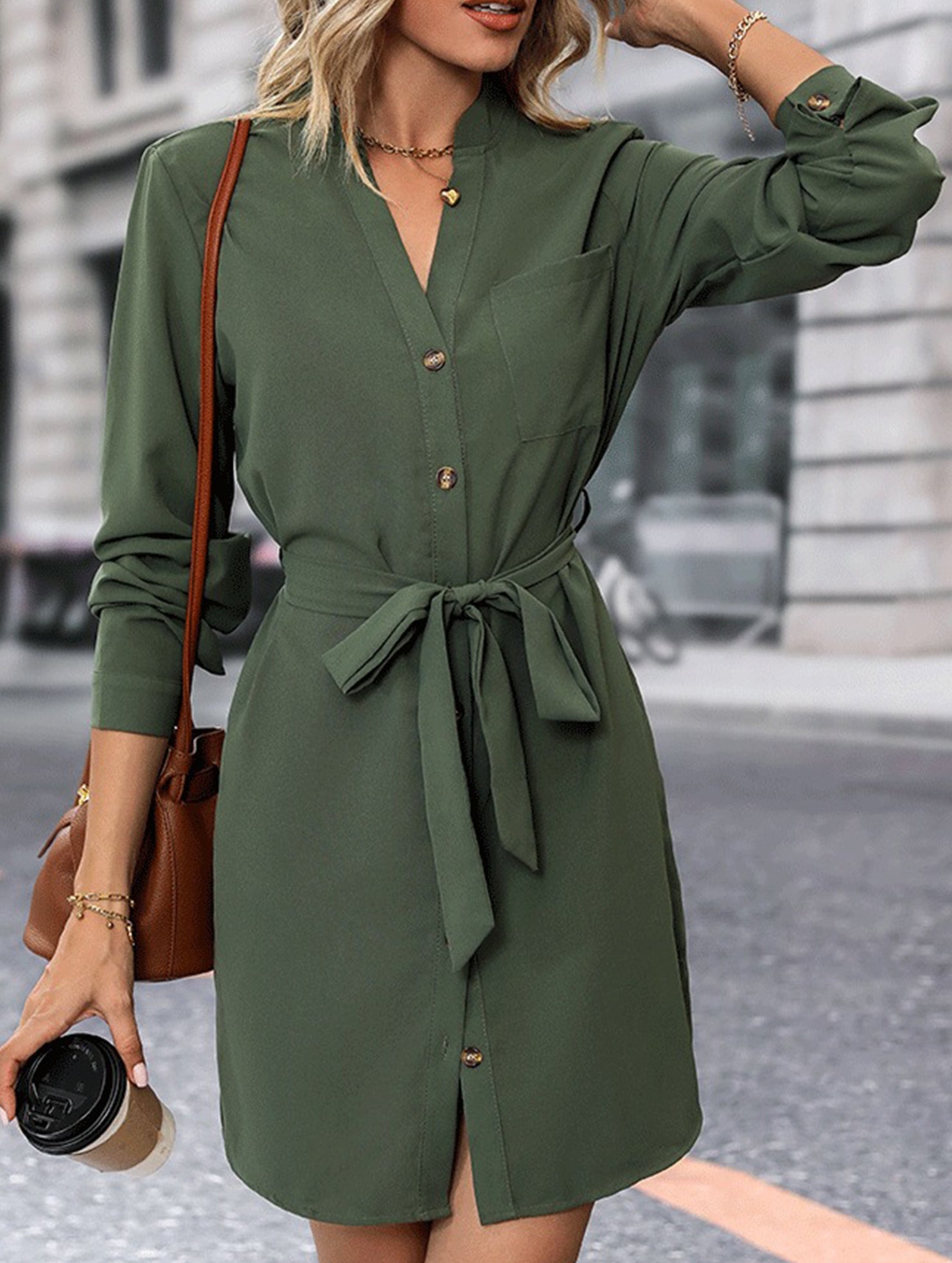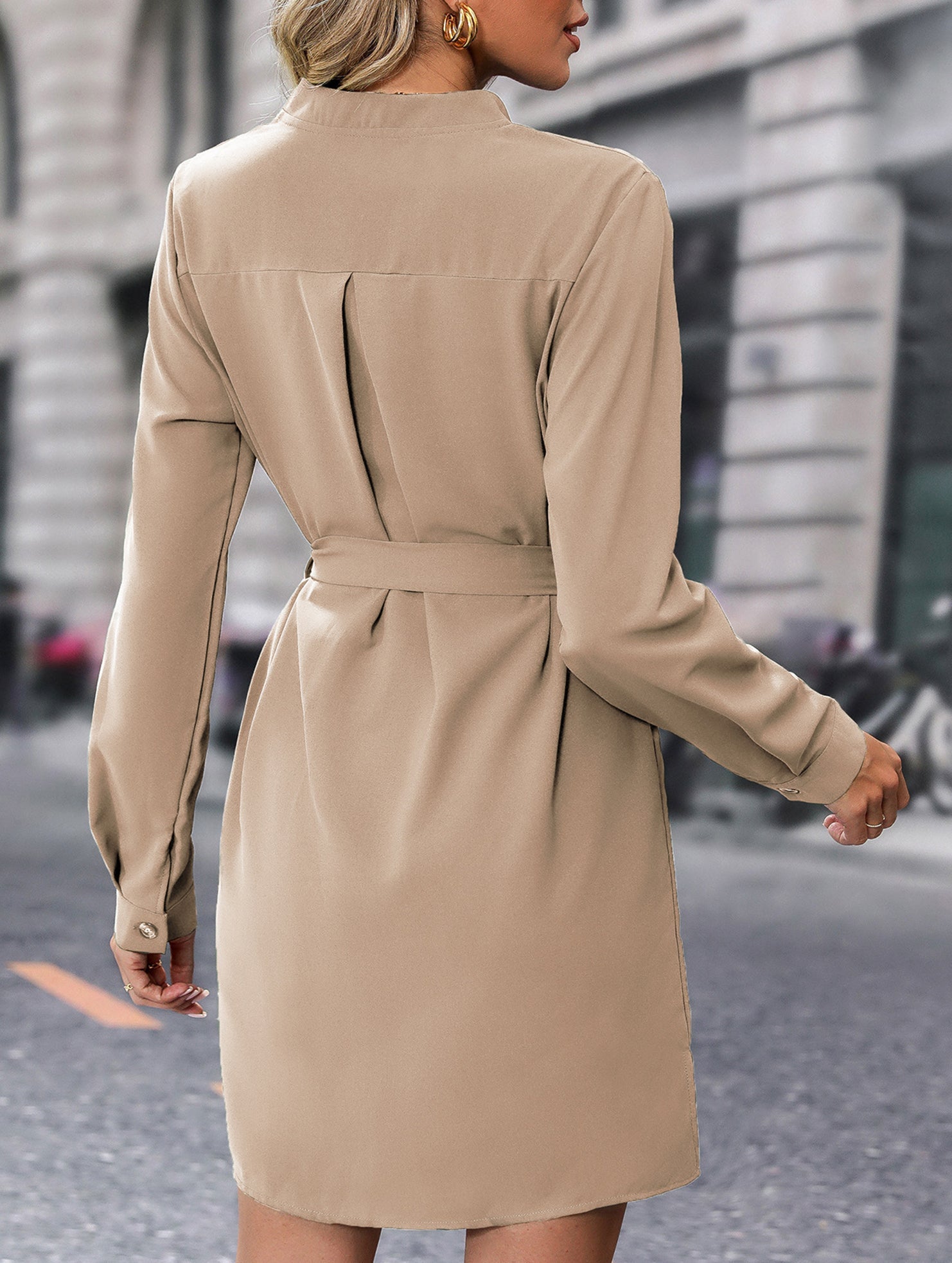 Solid color long-sleeved dress