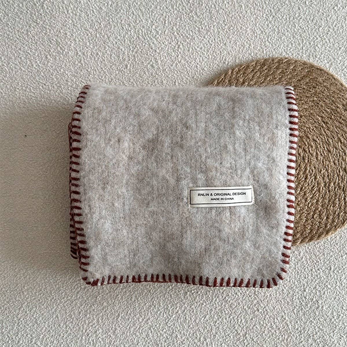 Solid Wool Blend Knit Scarf ??Color-Blocked Trim_CWASC2291