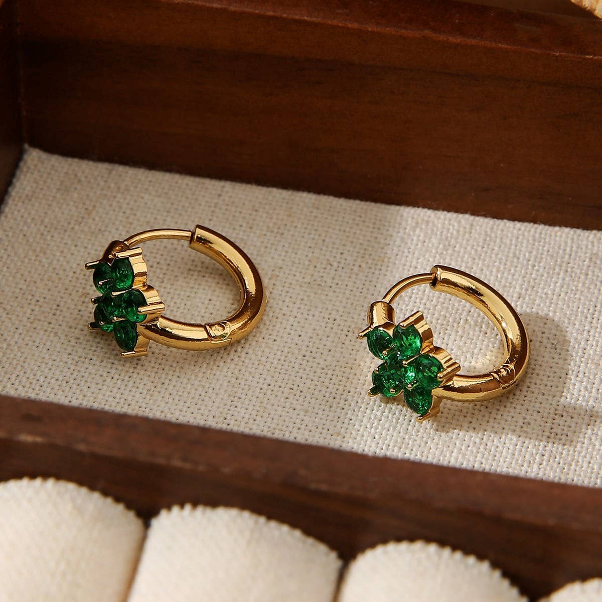 STAINLESS STEEL FLOWER EARRINGS WITH ZIRCON