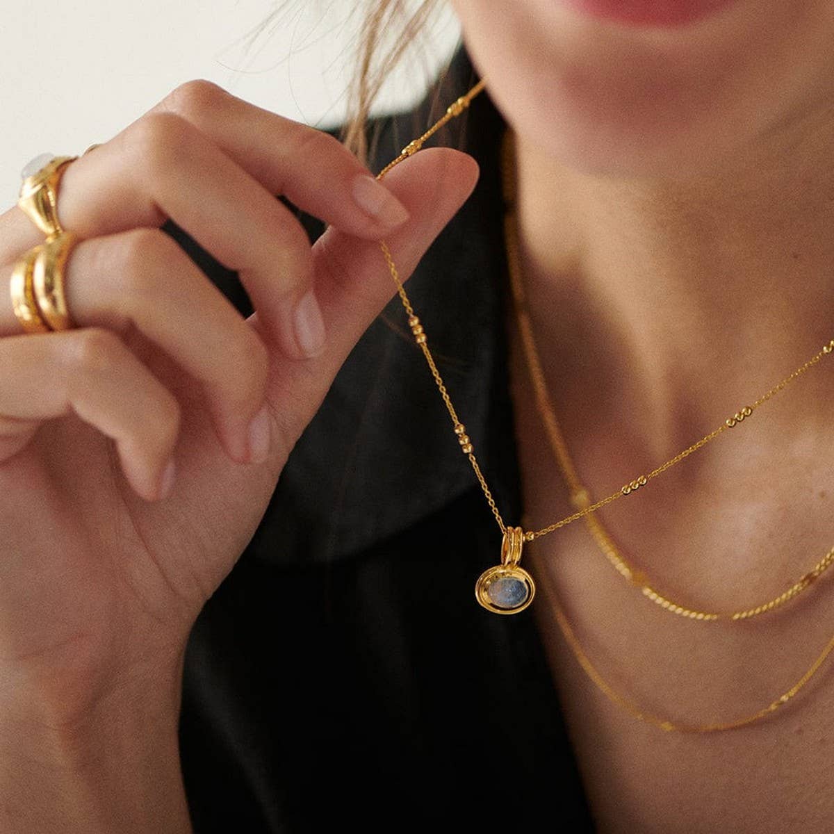 Stainless Steel Multi-Layered Gemstone Necklace_CWMM5733