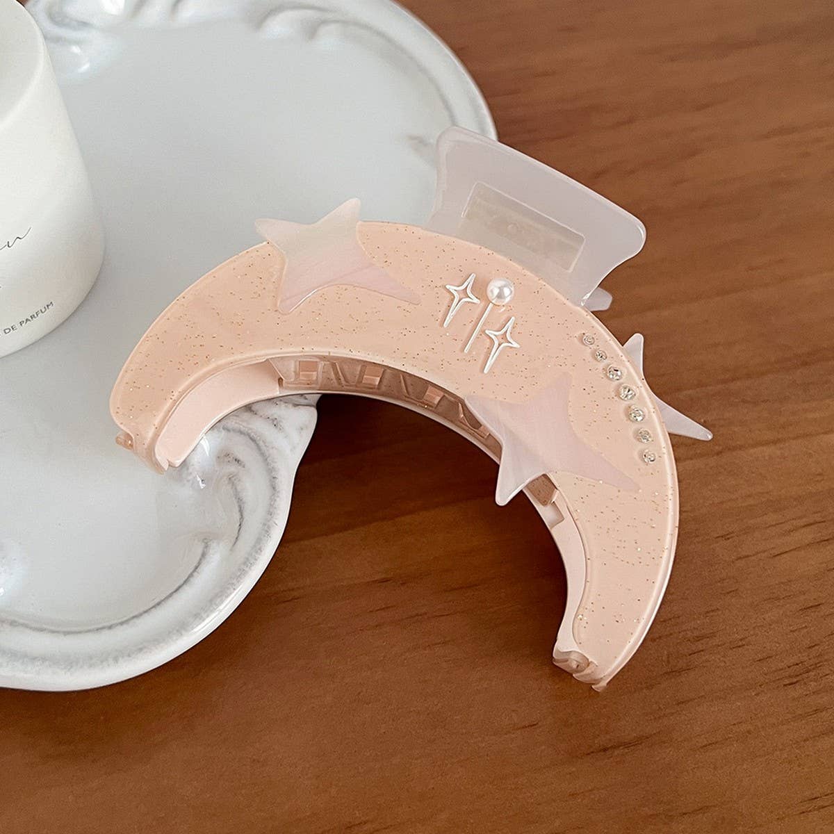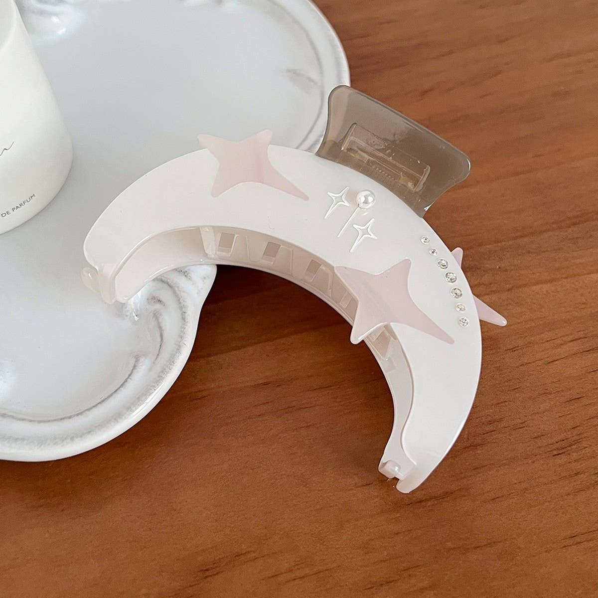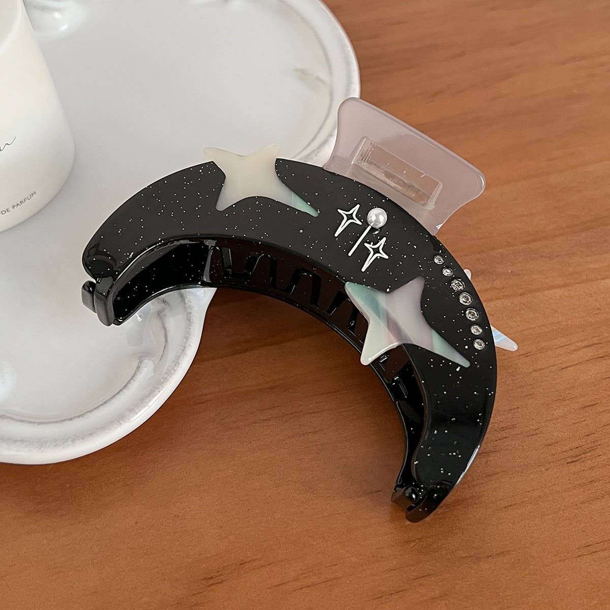 Star & Moon Rhinestone Hair Claw Acetate Clip_CWAHA5821