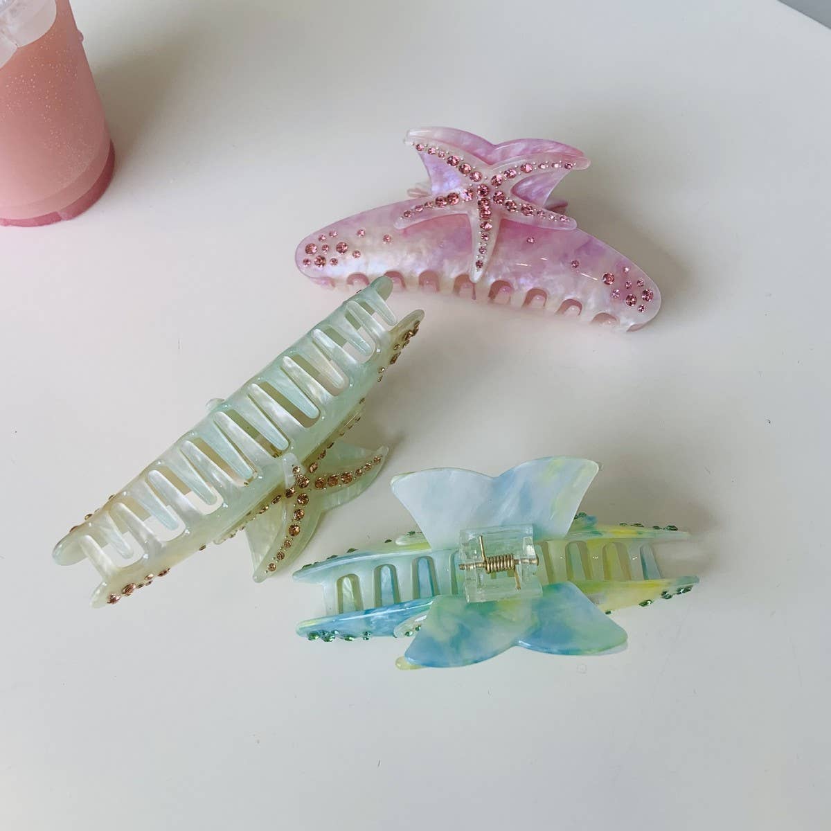 Starfish Rhinestone Hair Claw Luxe Acetate Clip_CWAHA2157
